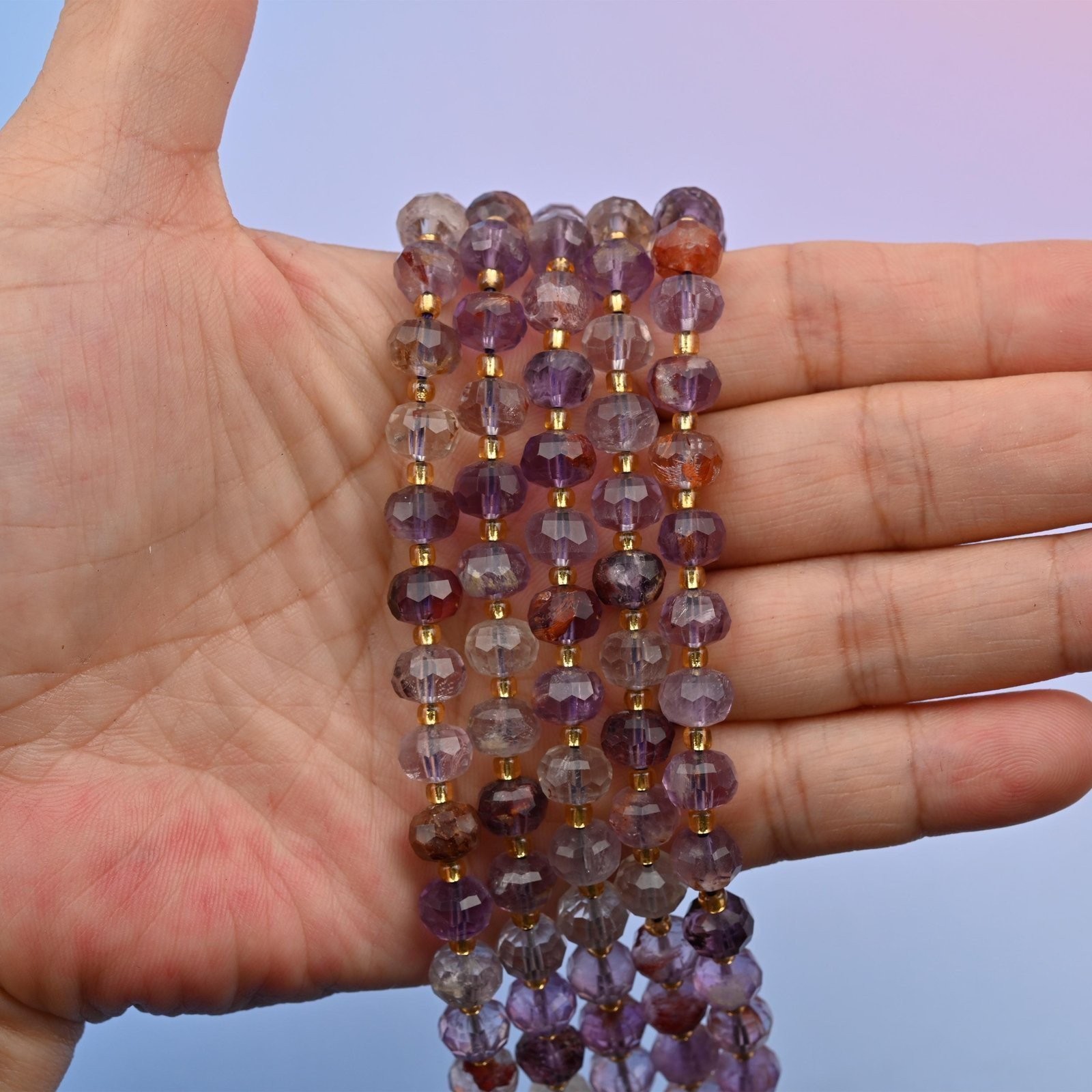 как выглядит Super 7 Faceted Gemstone Rondelle Beads 6x8mm Jewelry Making 15.5 Inch Strand фото