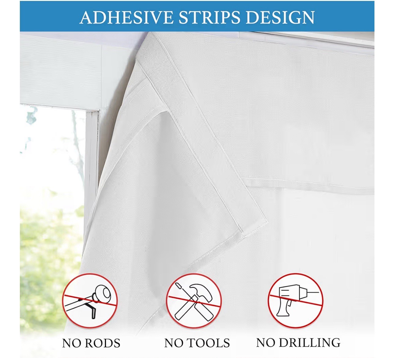 RYB HOME Natural linen blend French door curtain short privacy w/light 26 in