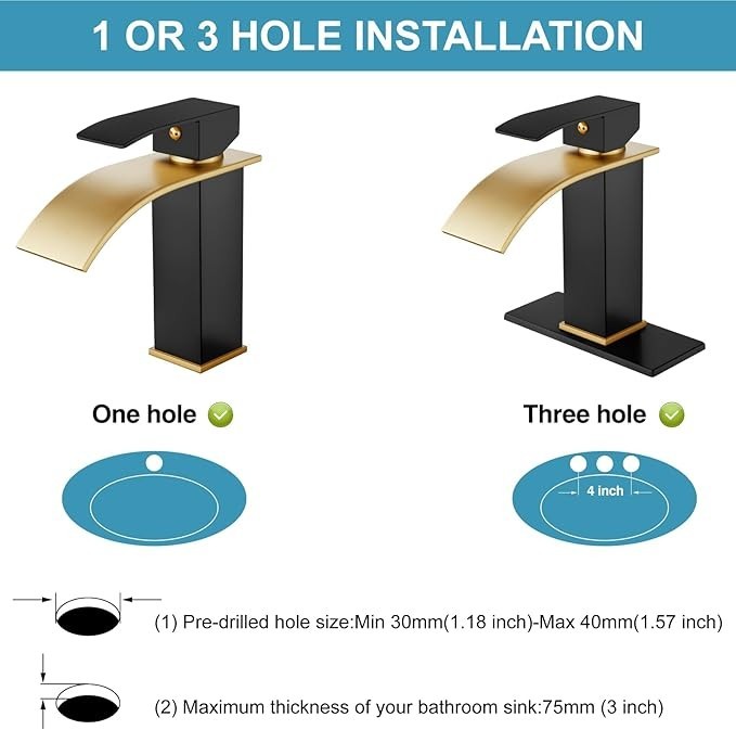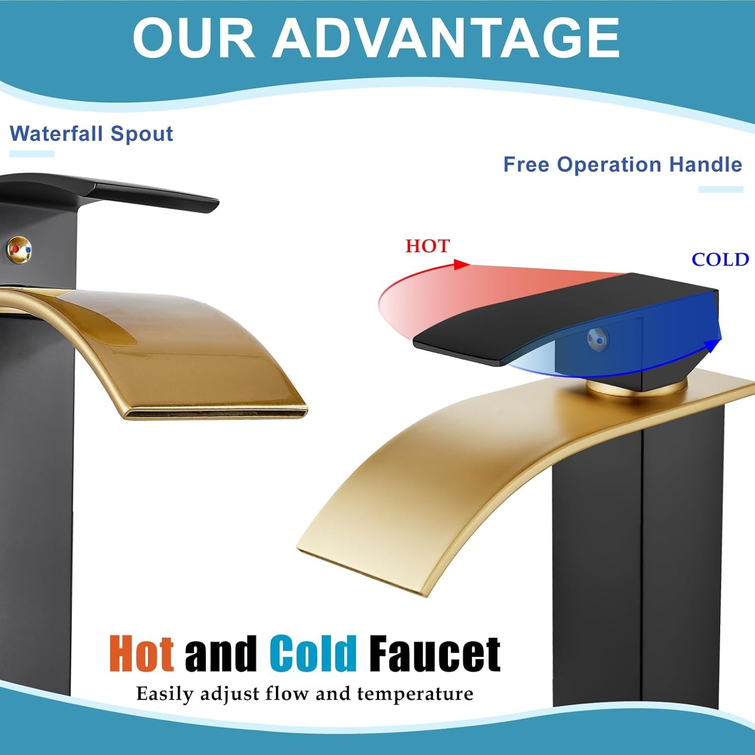 Black Gold Bathroom Sink Faucet Single Handle Waterfall 3 Holes Basin Mixer Tap