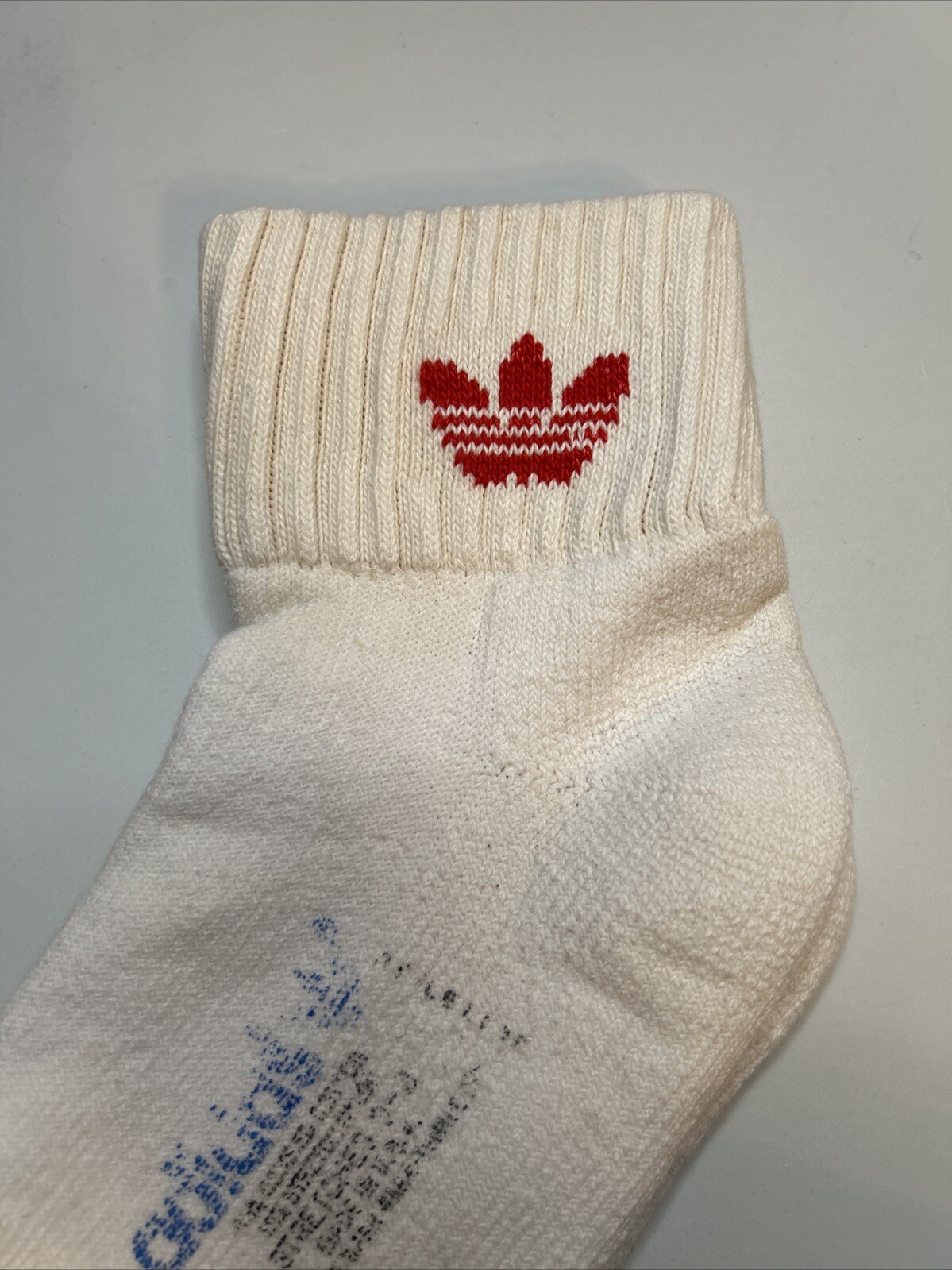 VTG Adidas Trefoil Quarter Socks Orlon Acrylic 1980's 9-11 USA Red Logo