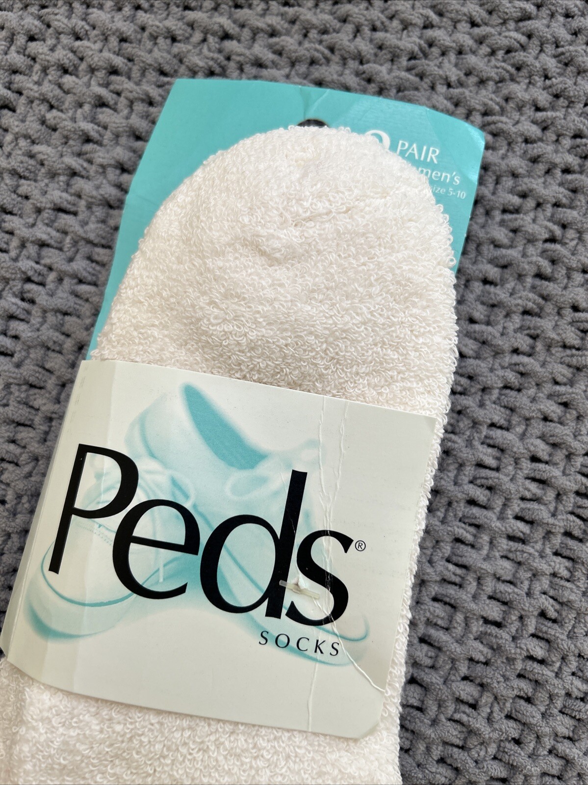как выглядит VTG Socks 2 Pack Peds Low Cut Ankle White NOS Cotton Polyester Spandex USA 90