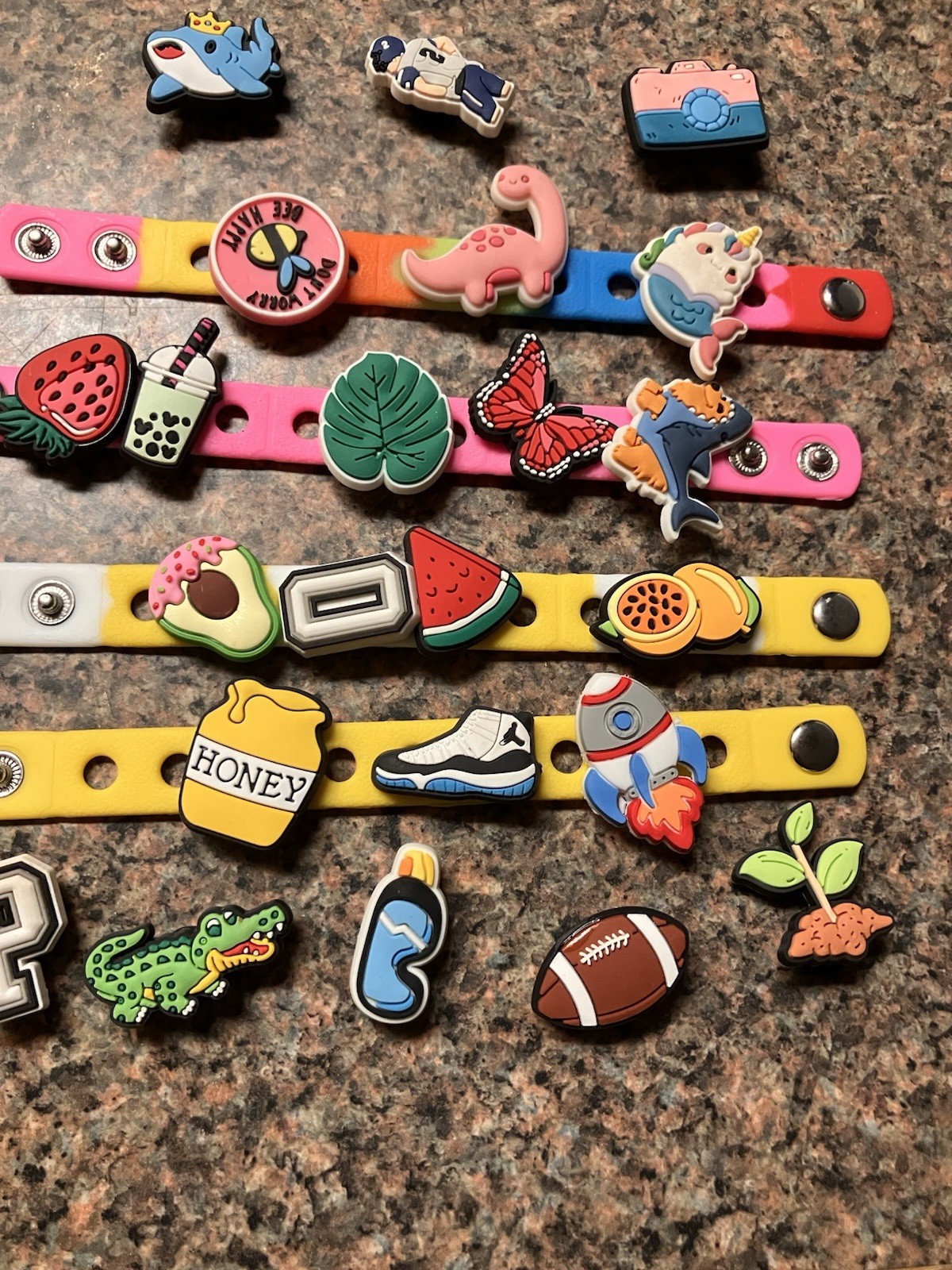как выглядит Snap On Braclets Croc Shoes Snap In Bling Dinosaur Shark Football Charms фото