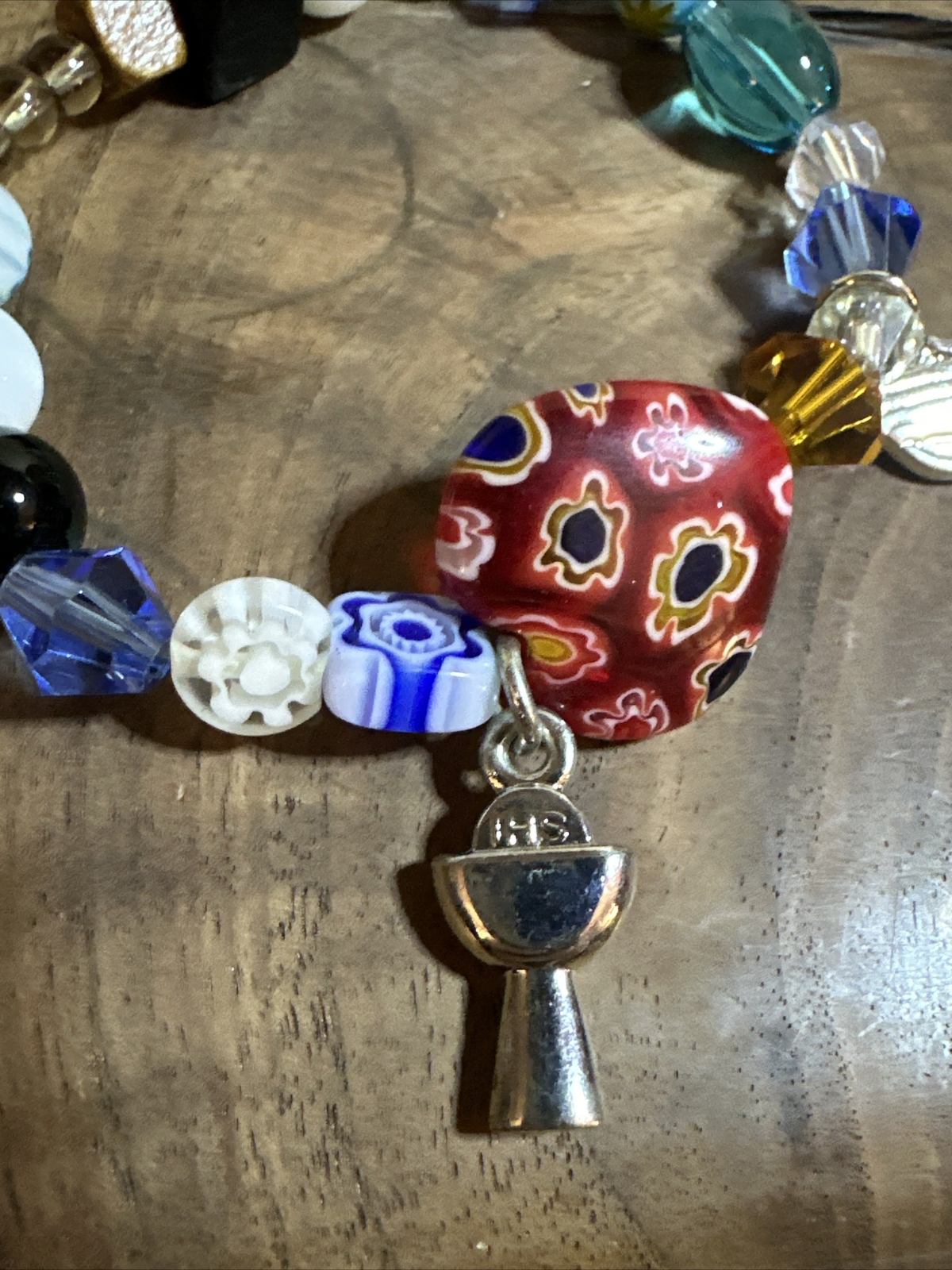 • First Communion Bracelet for Girls with IHS Chalice and Cross Charms 6 Inch