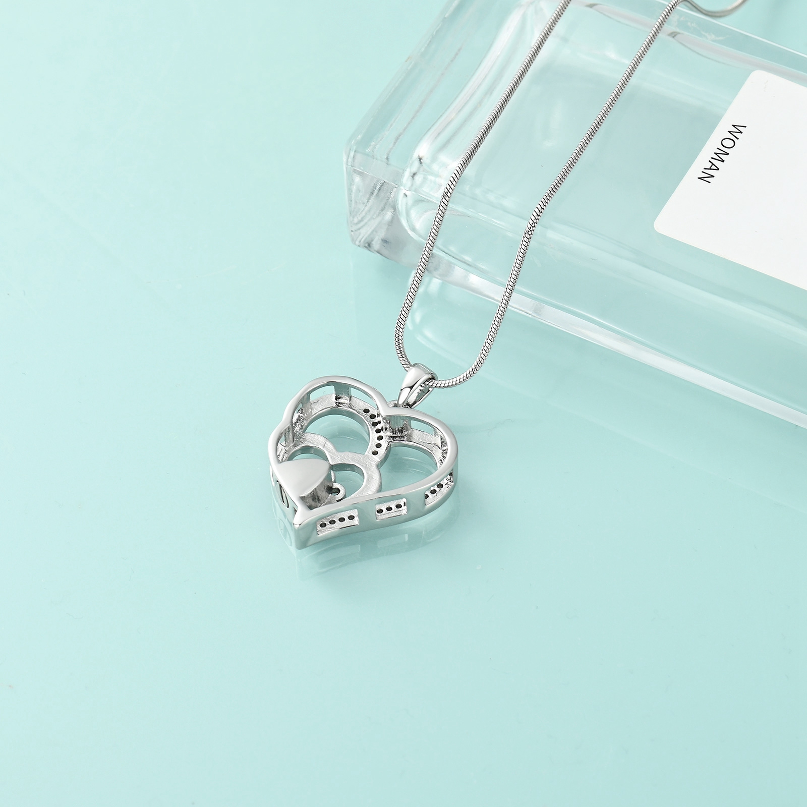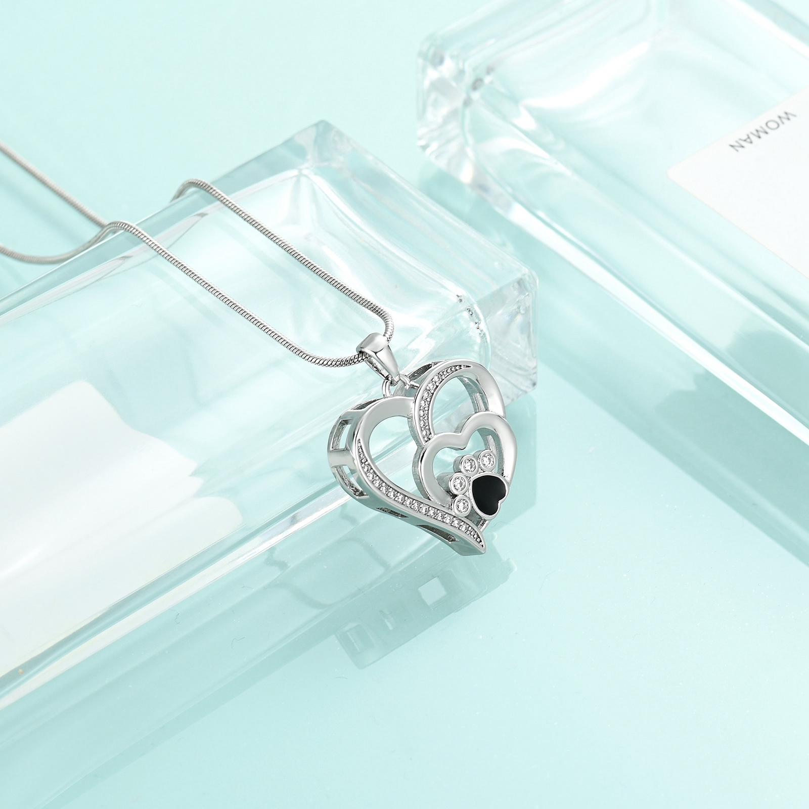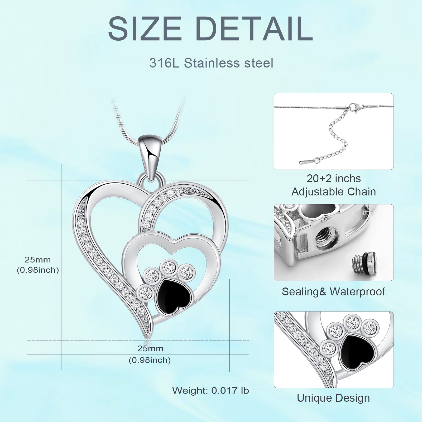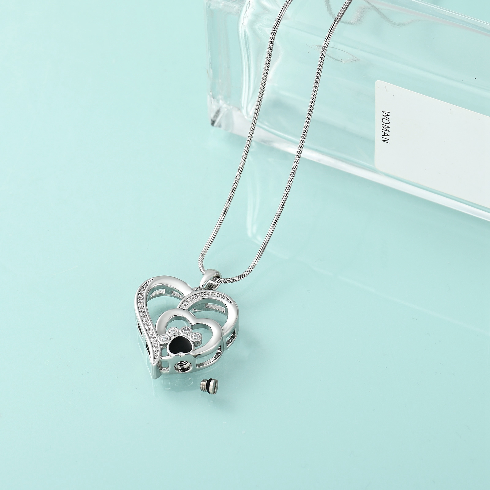 Paw Print Heart w/ Heart Urn Pendant Pet Memory Necklace Dog Cat Ashes Keepsake