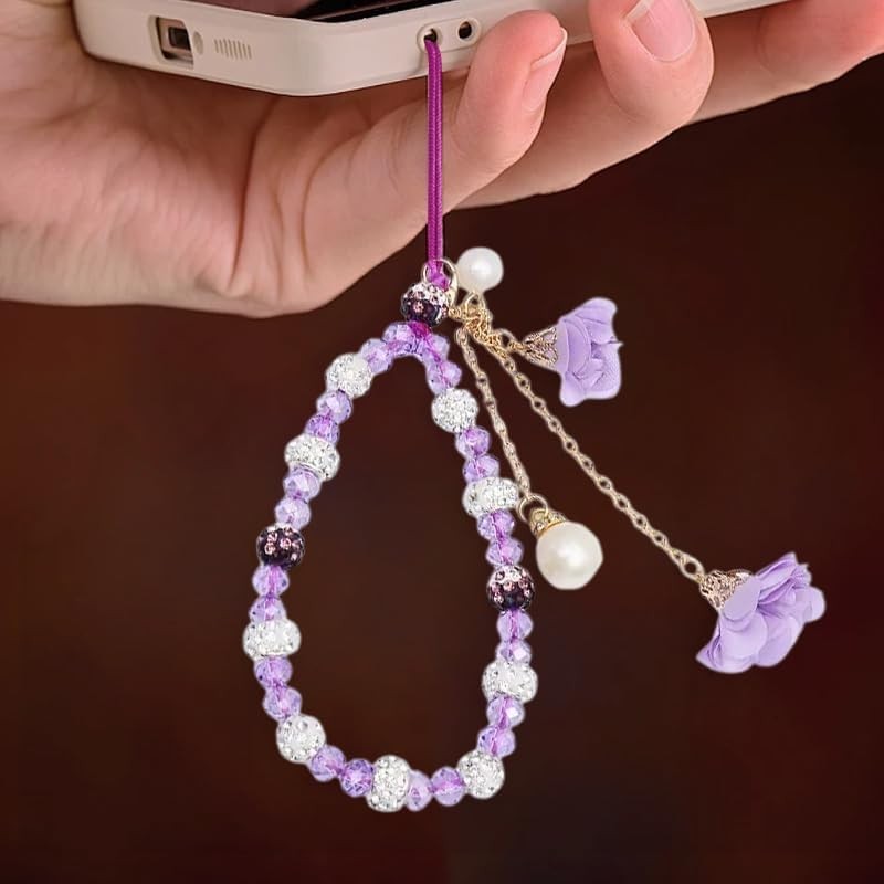 Portable Crystal Rose Flower Phone Strap Cord Chain Key Holder Pendant
