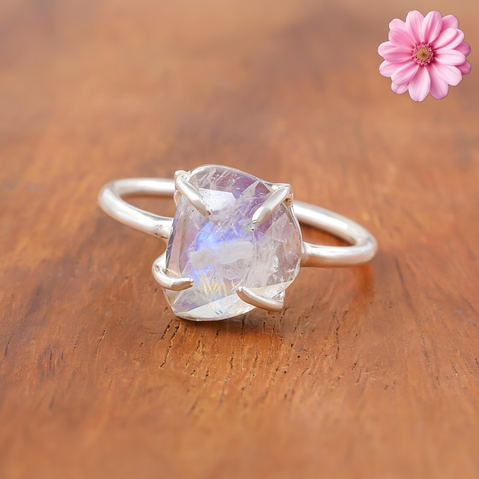 как выглядит Rainbow Moonstone Gemstone 925 Sterling Silver Ring Handmade Jewelry Ring Gift фото