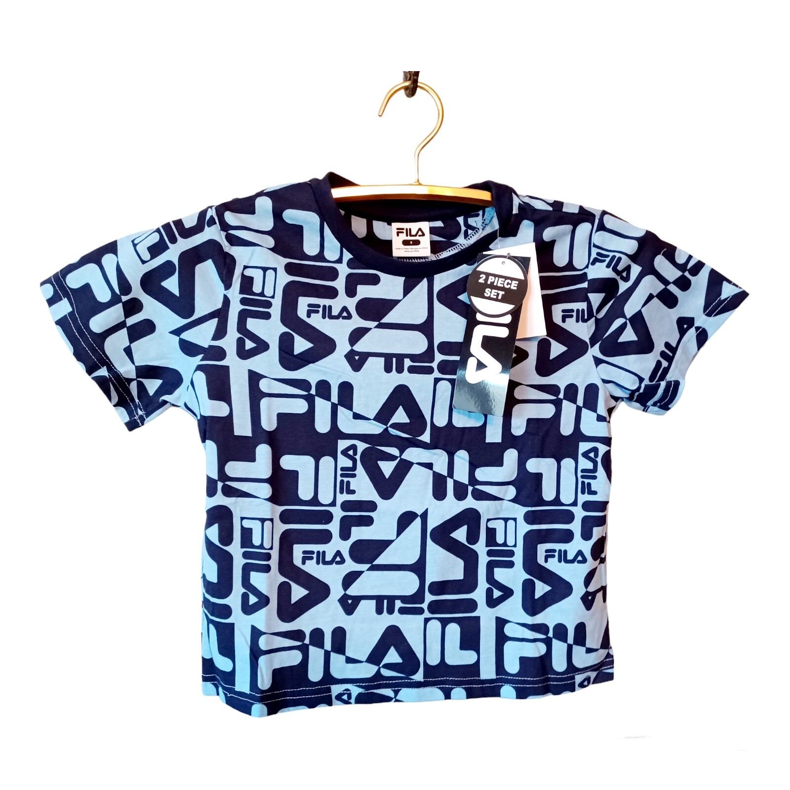 как выглядит Fila Navy Blue Shorts Set 7 Boys Spellout T-Shirt Solid Shorts фото