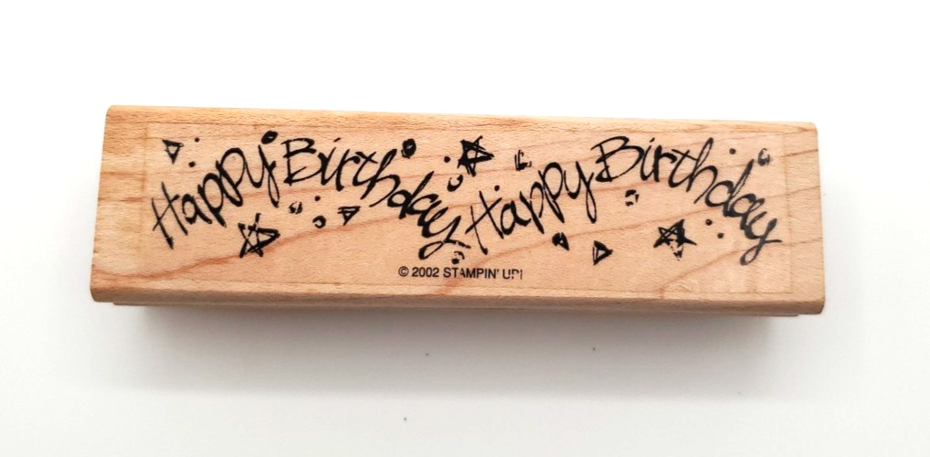 2002 Stampin Up Happy Birthday Happy Birthday Wood Mounted Rubber Stamp