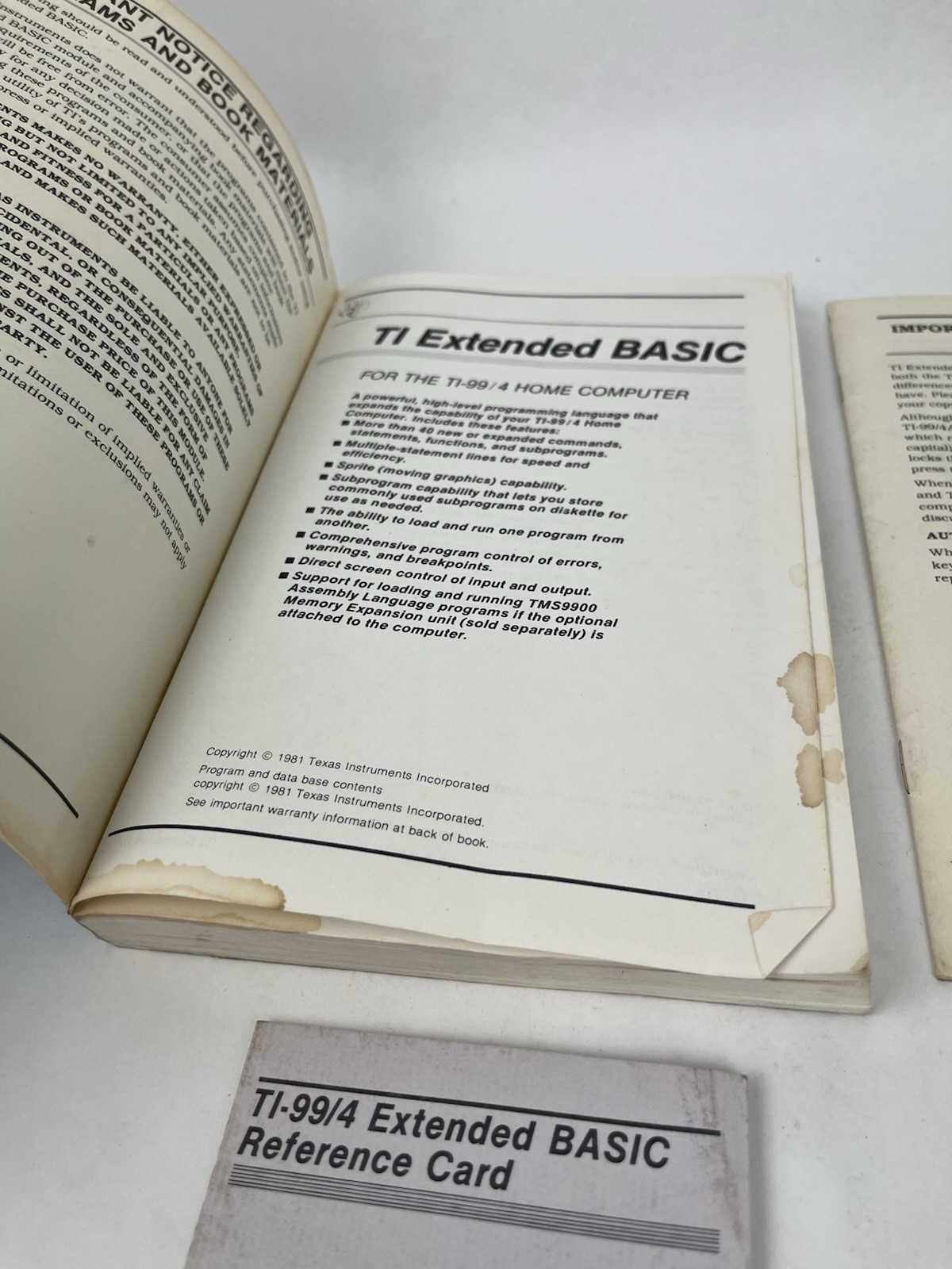 Texas Instruments TI99/4 Extended Basic Cartridge Manual - Untested PHM 3026