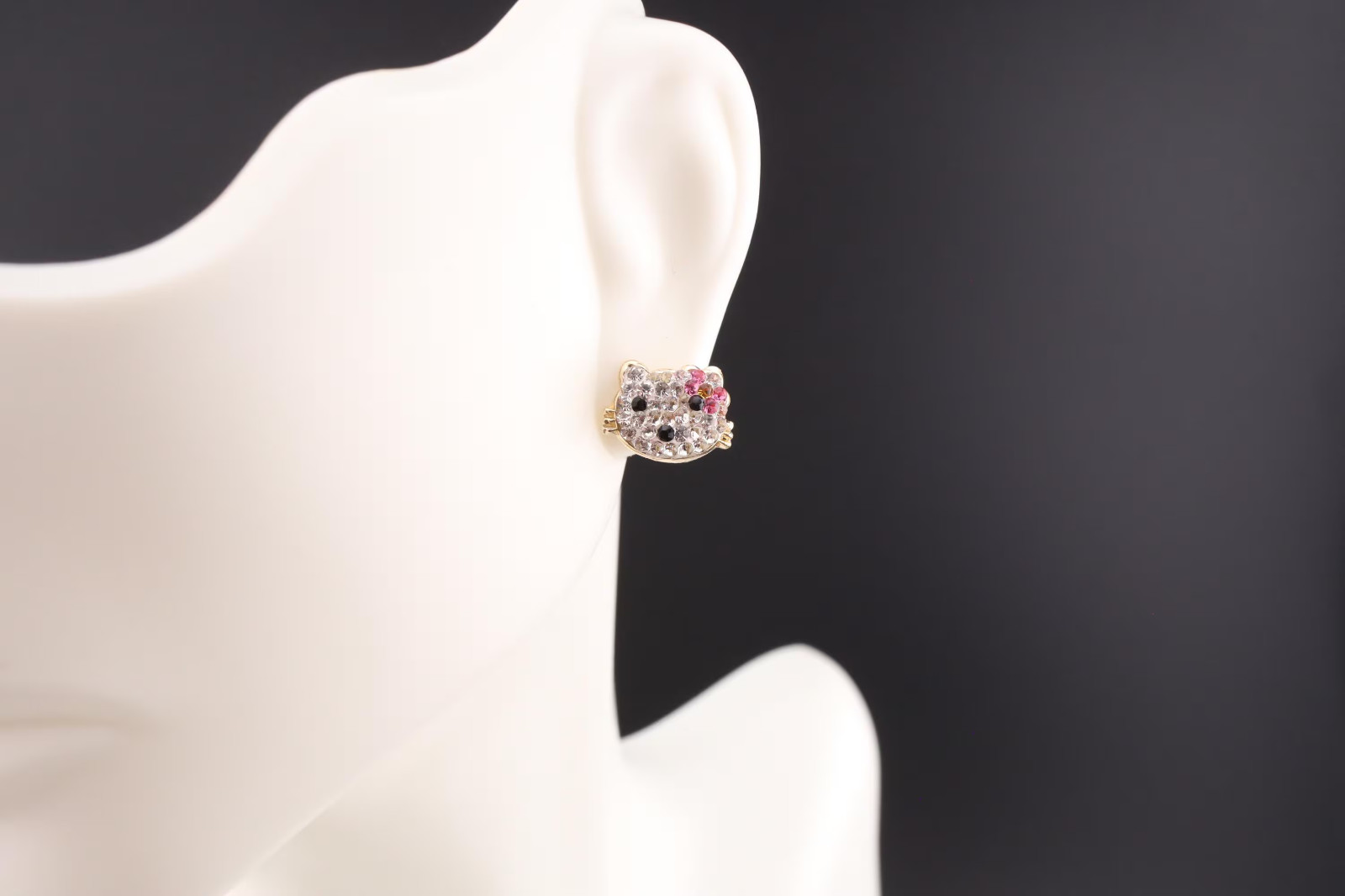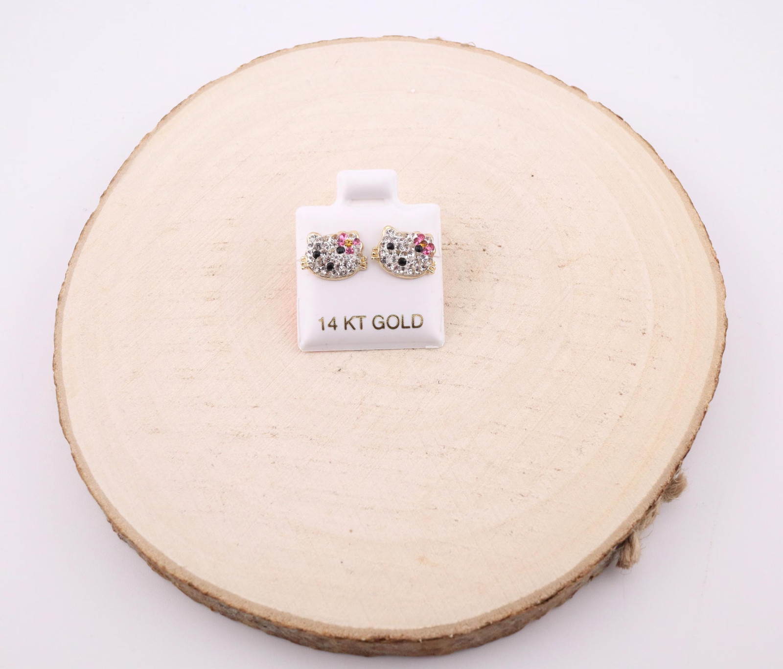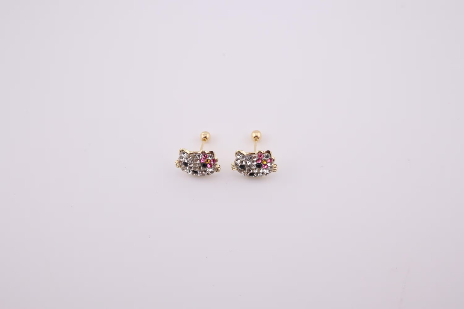 Women's 14k Gold Cubic Zirconia Hello Kitty Face Stud Earrings Screw Post