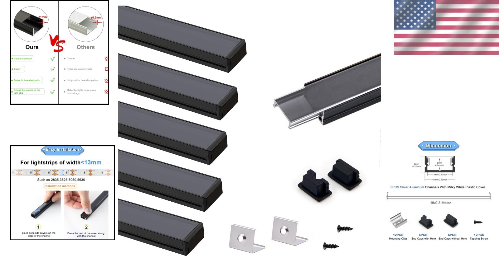 Versatile 1ft Black LED Strip Light Channel Set Ideal for Indoor Decor