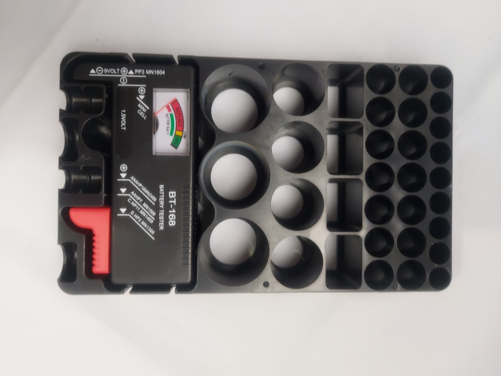 как выглядит New, Battery Tester Organizer BT-168 Holds 34 Batteries AA AAA C D 9V фото