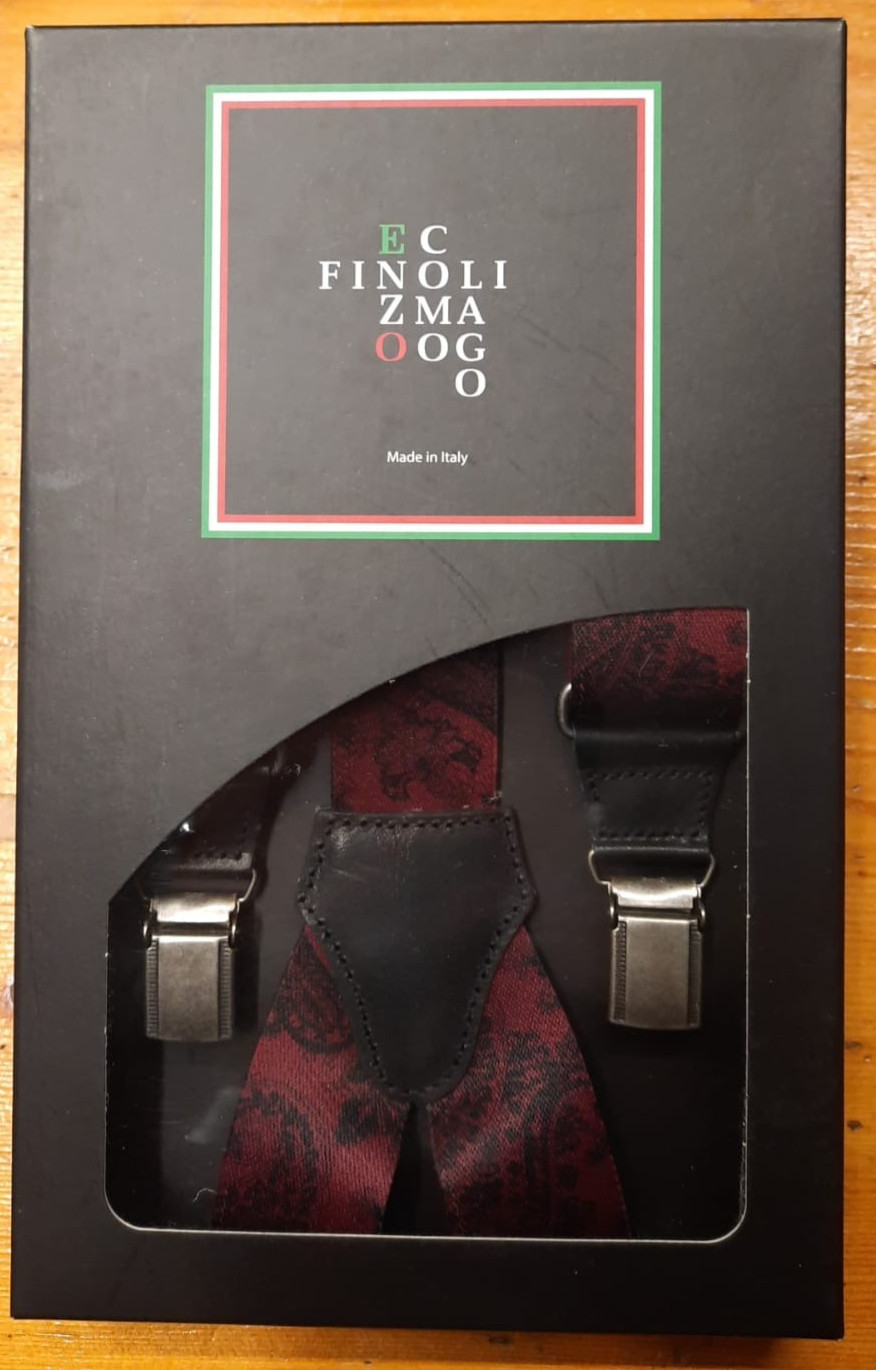 Print 25 Paesley Print Strap with Leather Inserts 36mm -100 Made in Italy