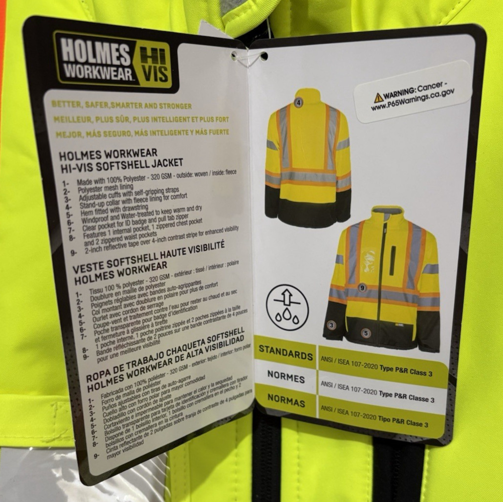 как выглядит Holmes Workwear Hi-Vis Yellow Softshell Jacket, Waterproof, Reflective 2XL фото
