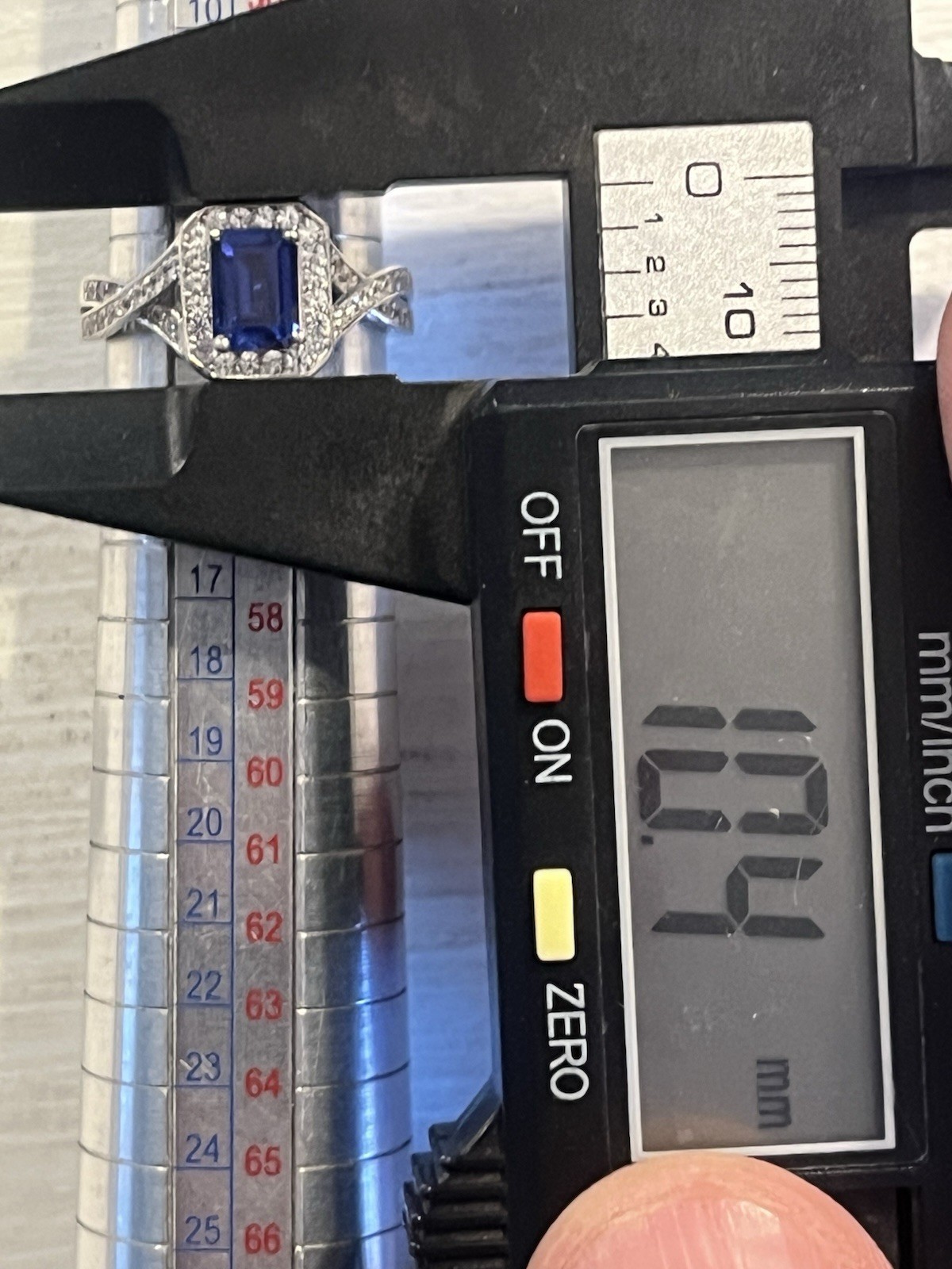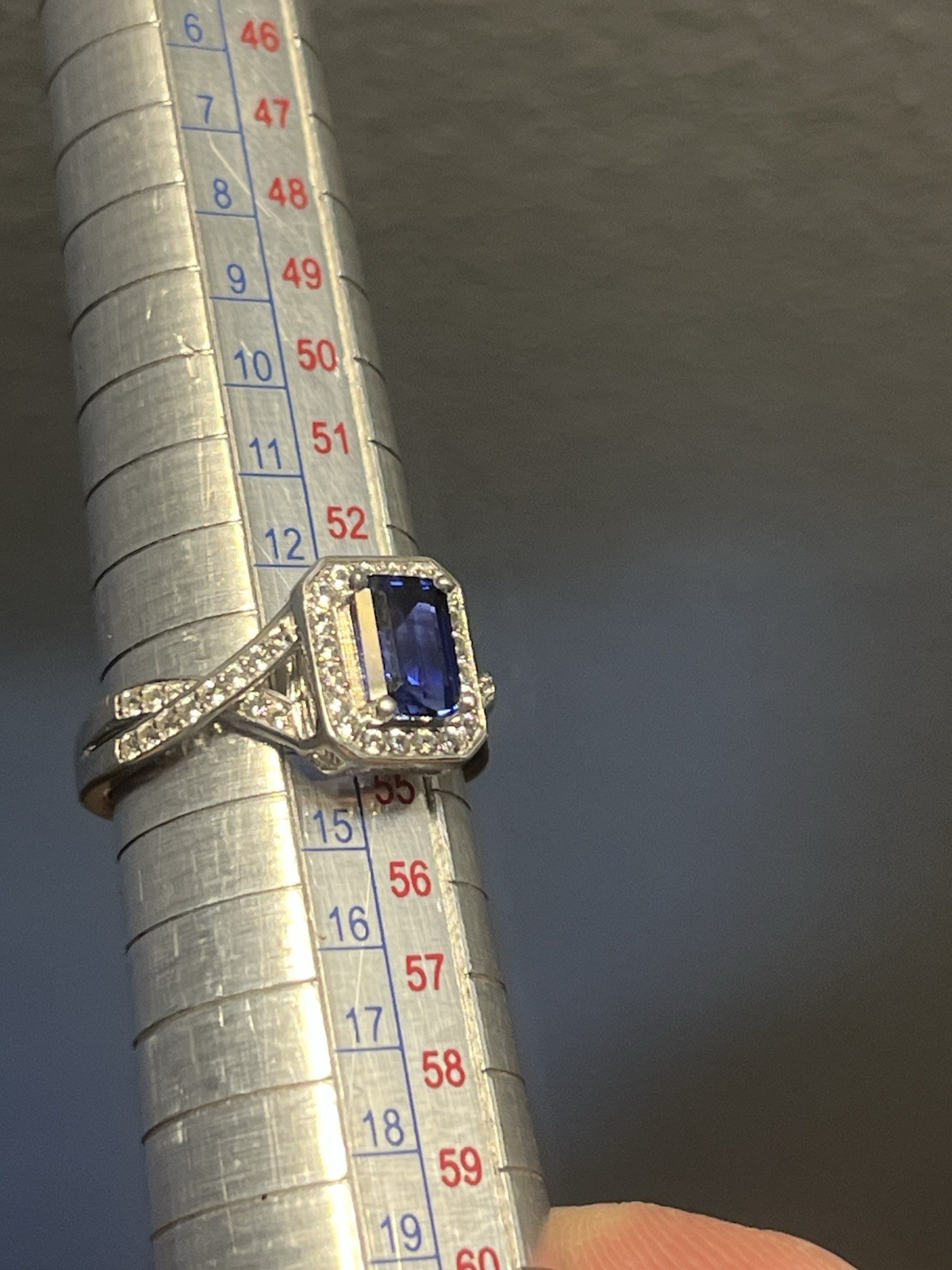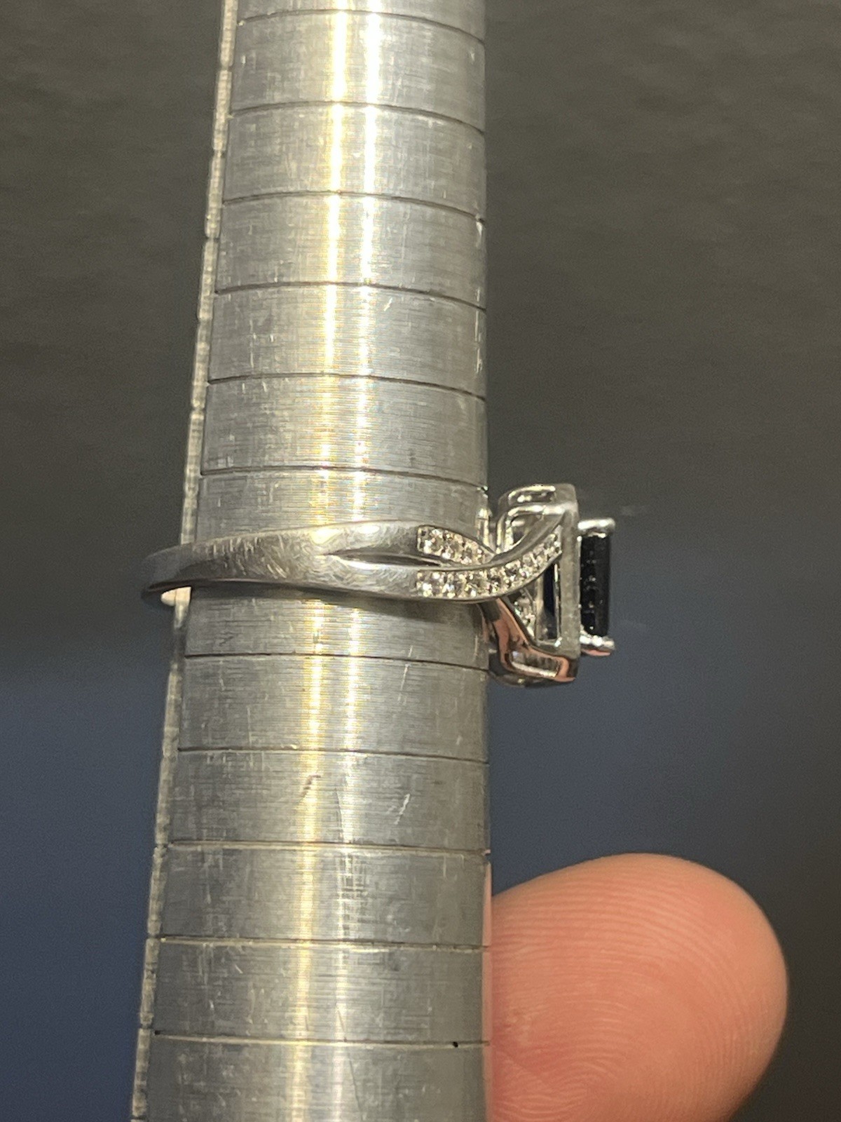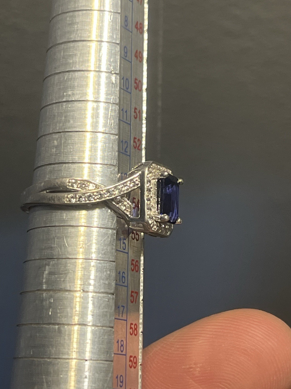 как выглядит Sterling Silver 925 Large Rectangle Blue Sapphire White Sapphires Size 6.75 фото