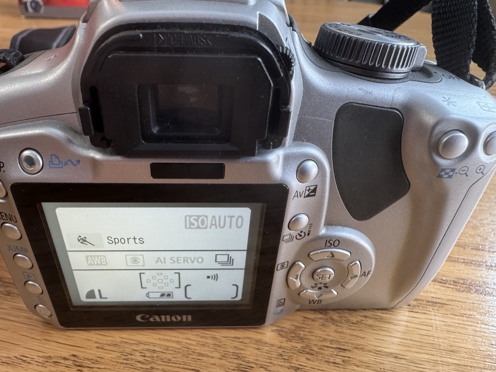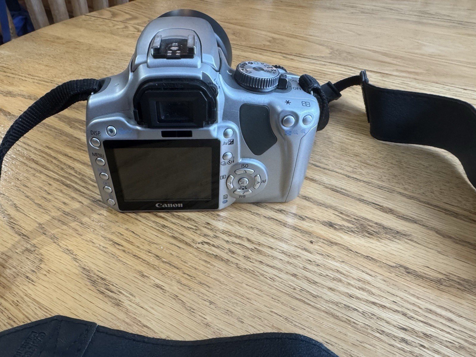 как выглядит Canon EOS Digital Rebel XTi DSLR Camera, 18-55 lens, telephoto, macro bag фото