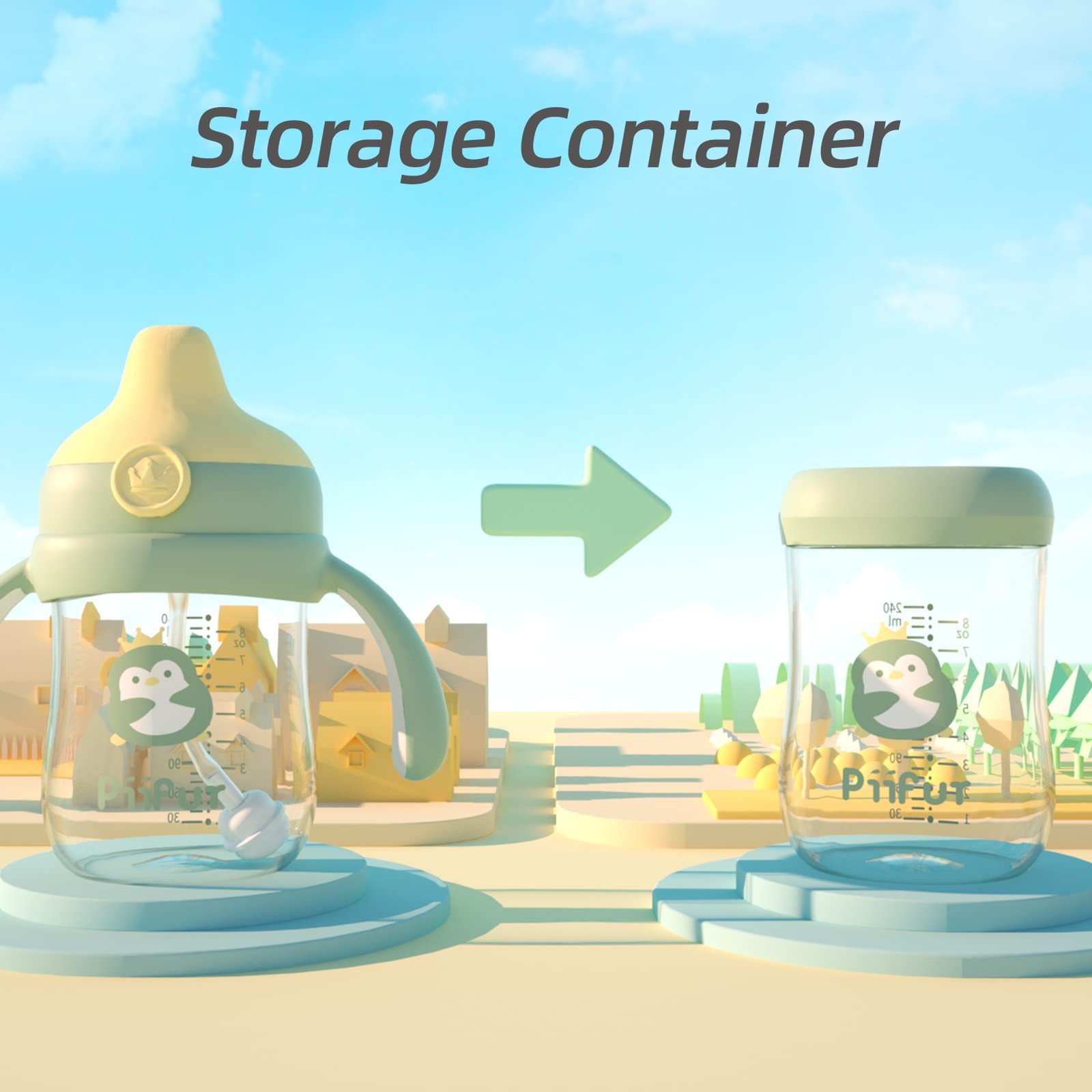 Included Components: Sippy Cup Lid, Storage Lid, Nipple, Straw Set, Bottle