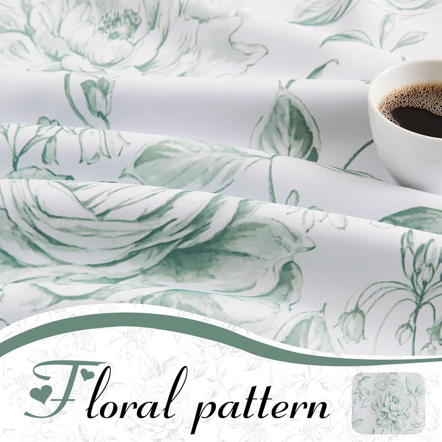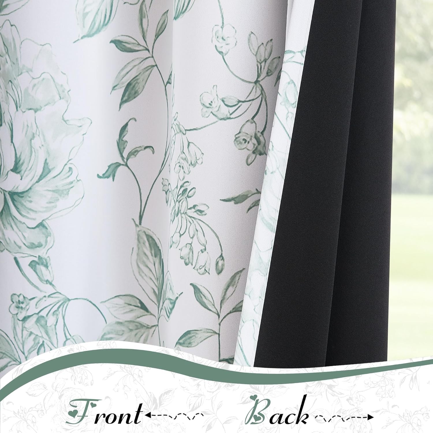 как выглядит Beauoop Floral 100 Blackout 50"W x 96"L Pack of 2 , Green фото
