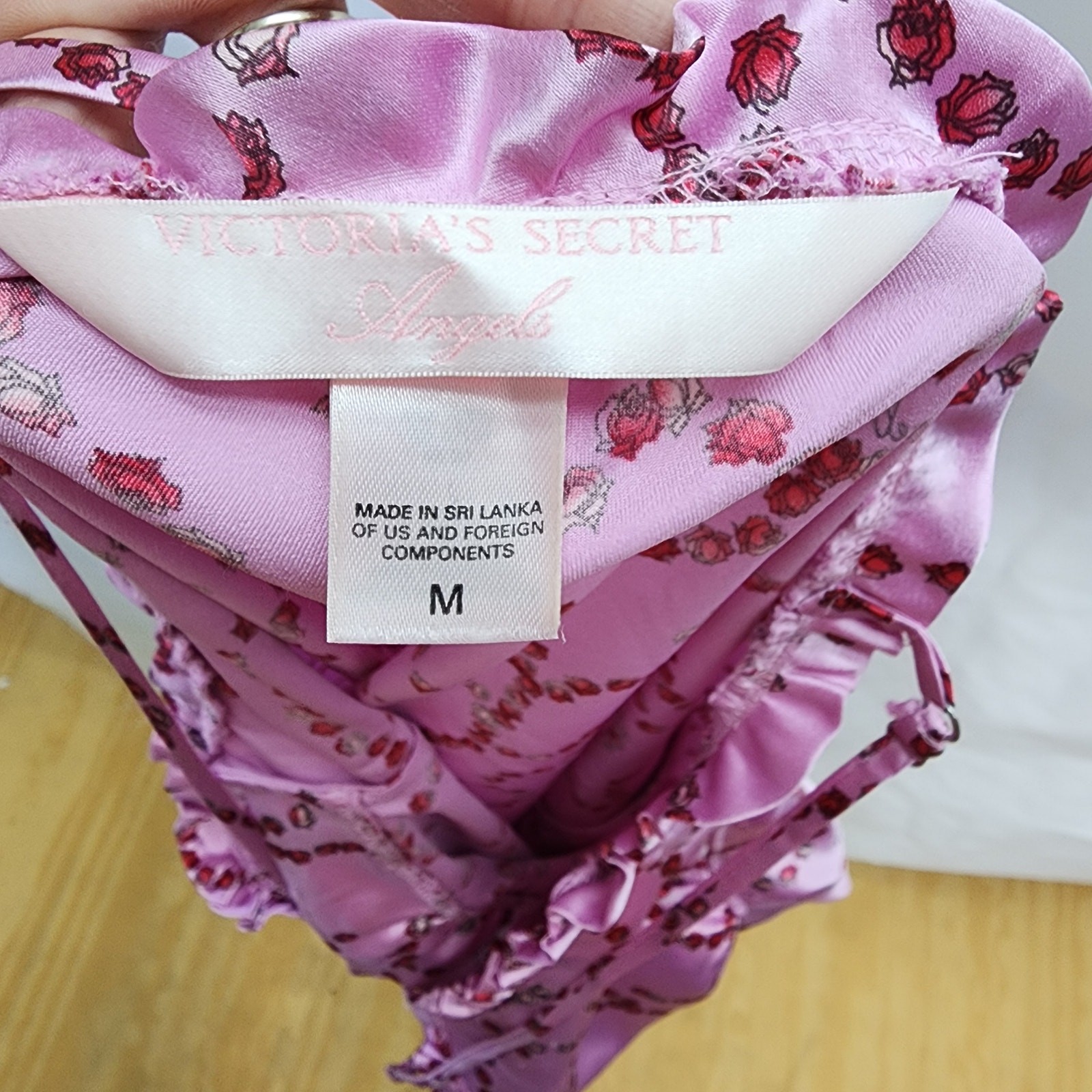 как выглядит Victorias Secret Angels Satin Purple Rose Print Babydoll Intimates Sleepwear фото