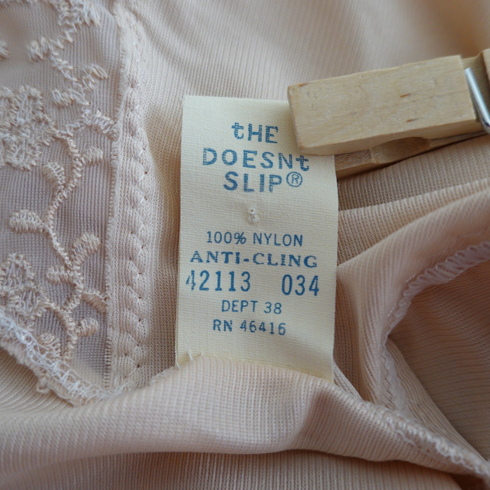 Sears Vtg The Doesn't Slip Full Slip Dress Pink Coquette Floral Embroidered Lace
