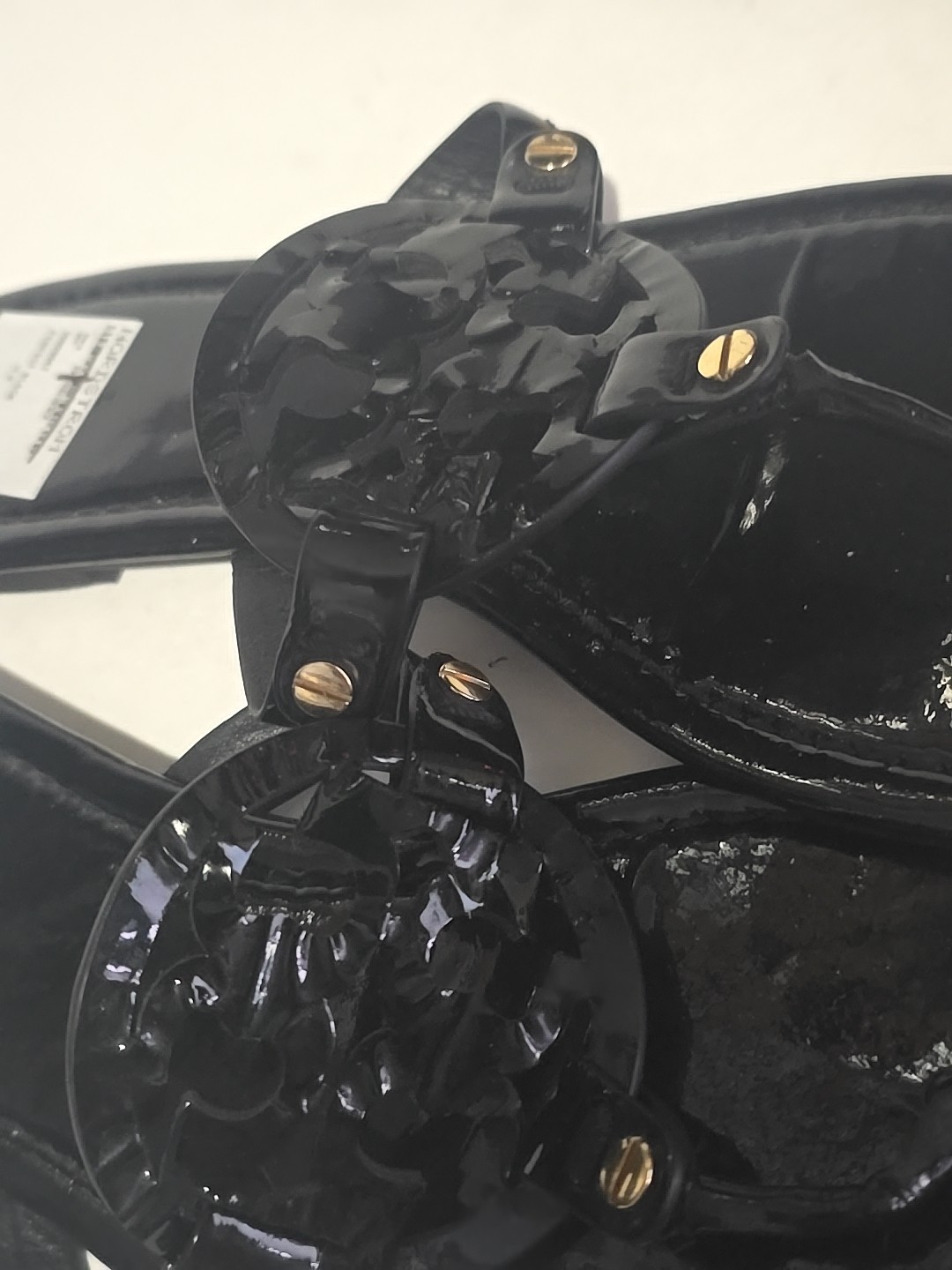 Tory Burch Mini Miller Black Patent Leather Thong Sandal Size 10