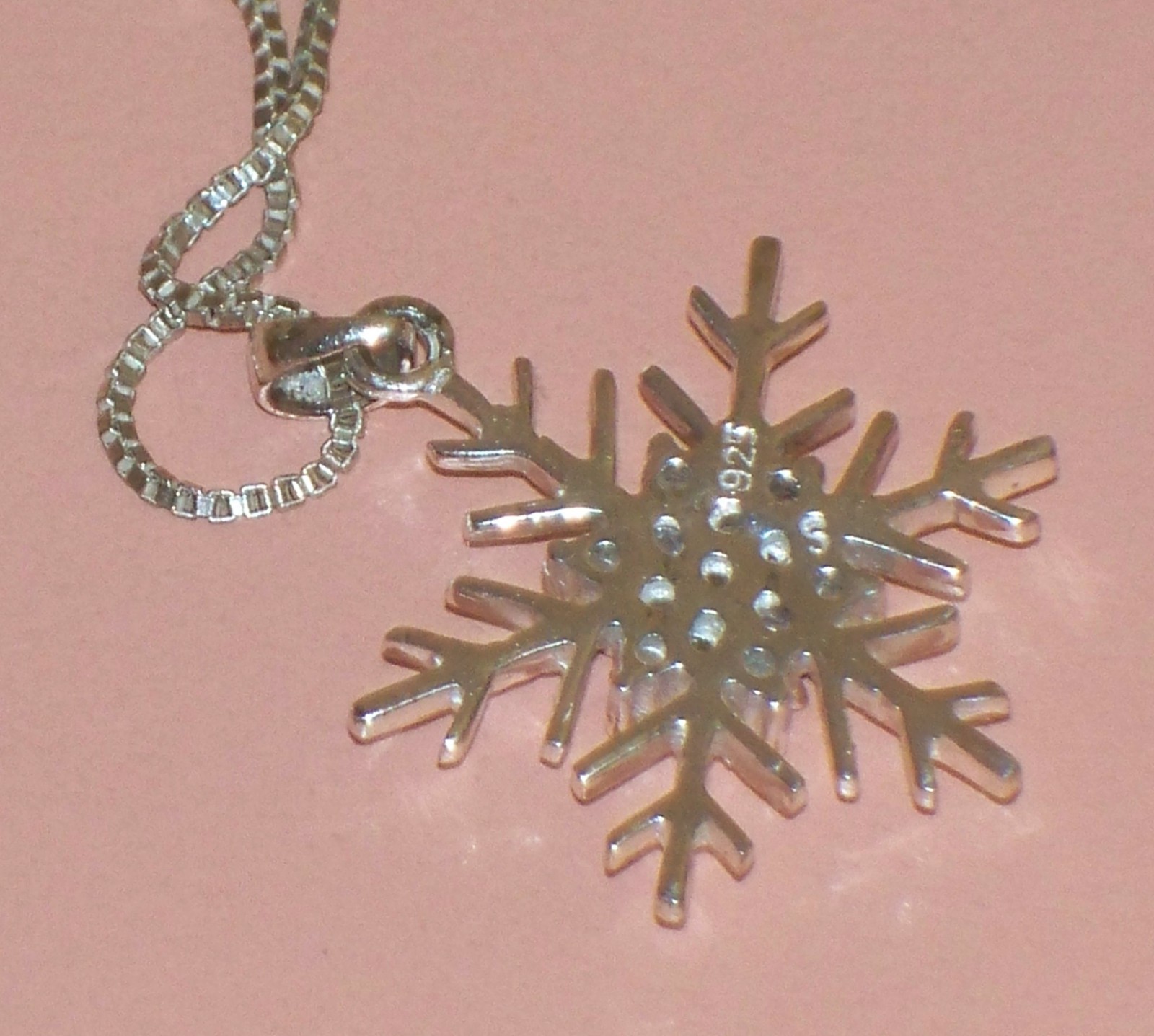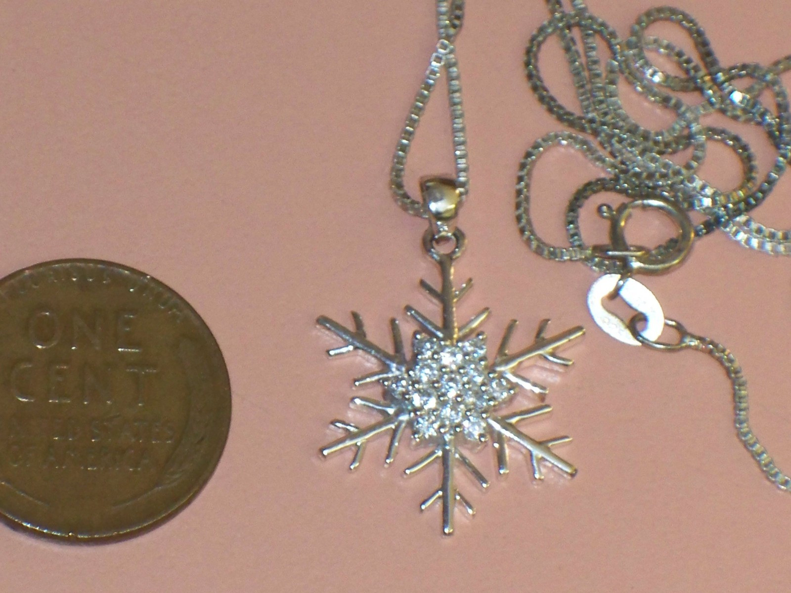 как выглядит STERLING Silver CZ SNOWFLAKE Pendant Charm CHRISTMAS NECKLACE 18 inch Box Chain фото