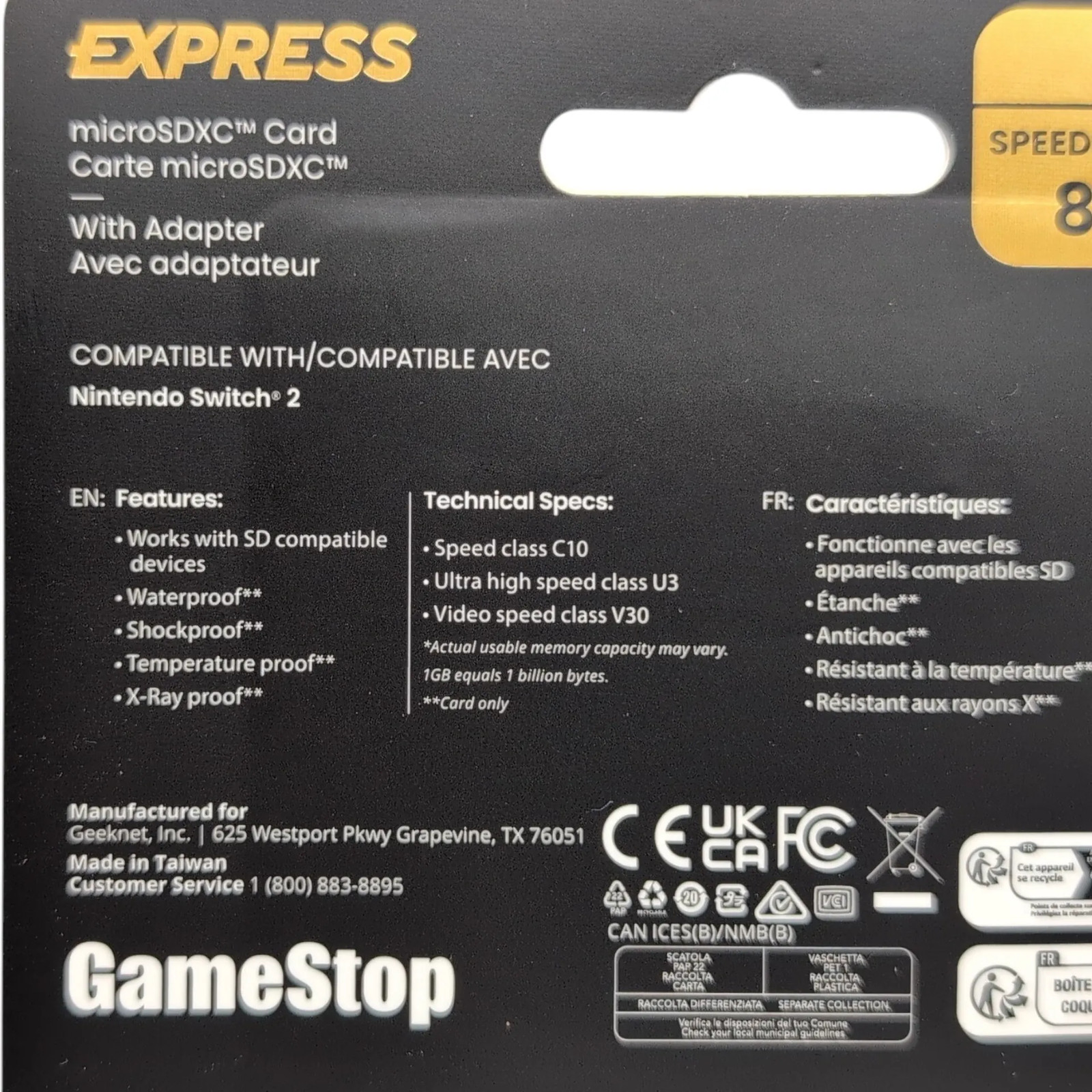 GameStop 512GB Express MicroSD Card For Nintendo Switch 2 W/ Memory Card Adapter