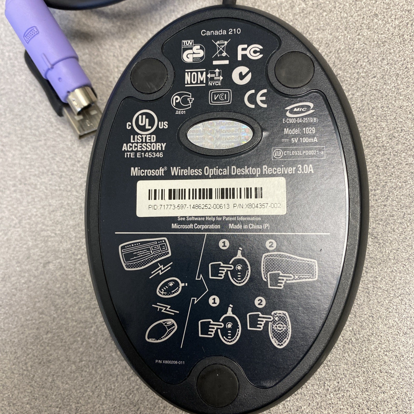 Microsoft 1029 Wireless Black Optical Desktop Receiver 3.0A 5V 100mA Dongle OEM