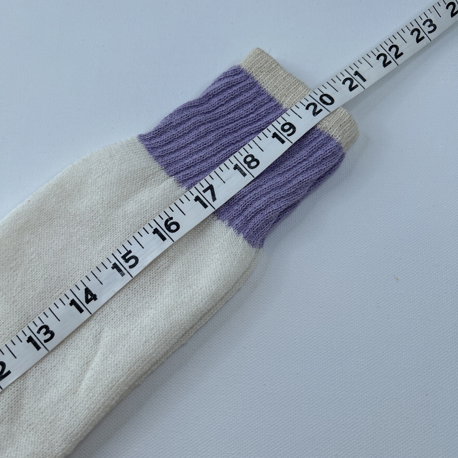 как выглядит VTG Womens Socks Ivory Baby Purple Striped 9-11 Acrylic Tube NOS 80s USA Made фото