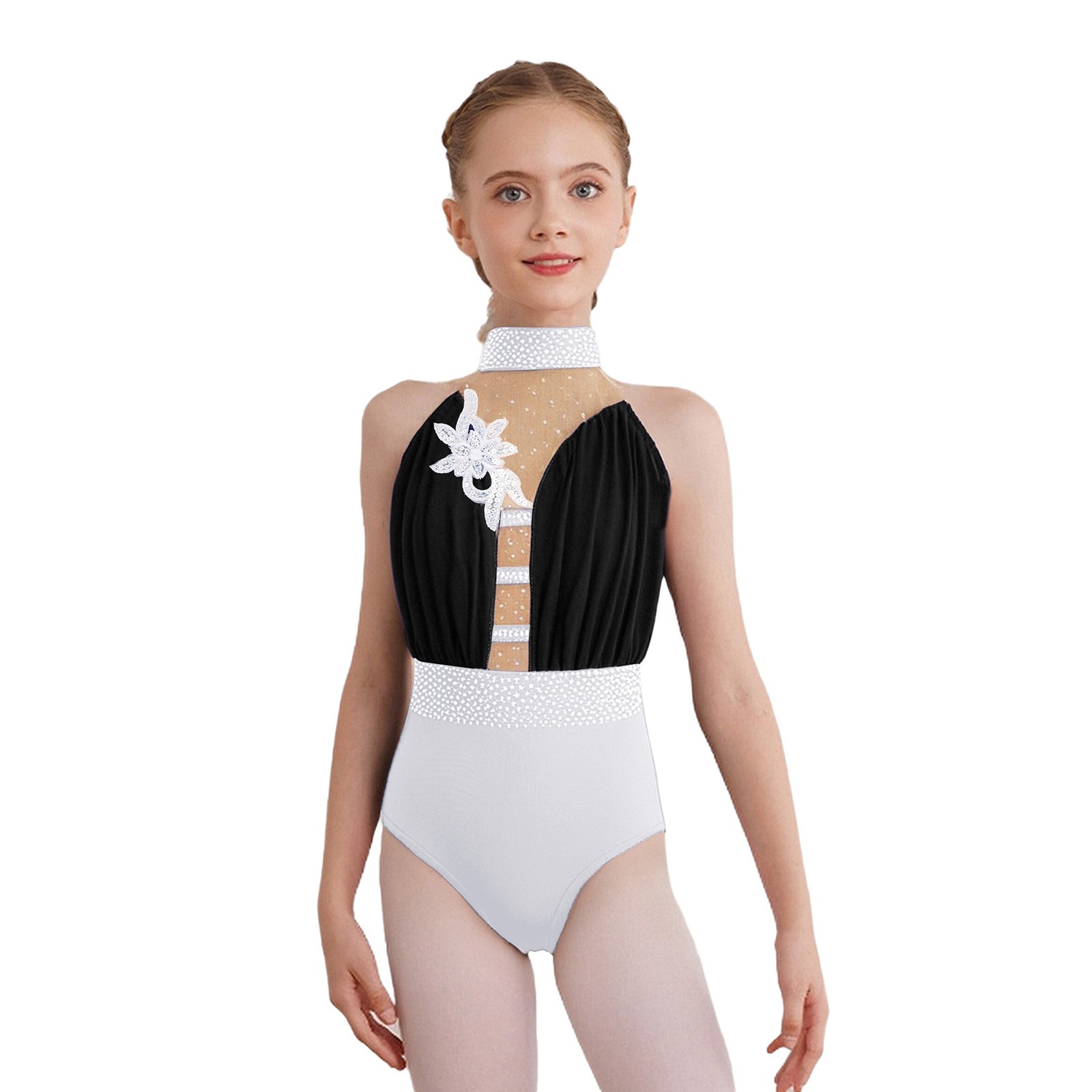 как выглядит Girls Leotard Skating Ballet Gymnastics Unitard Color Block Jumpsuit Figure фото