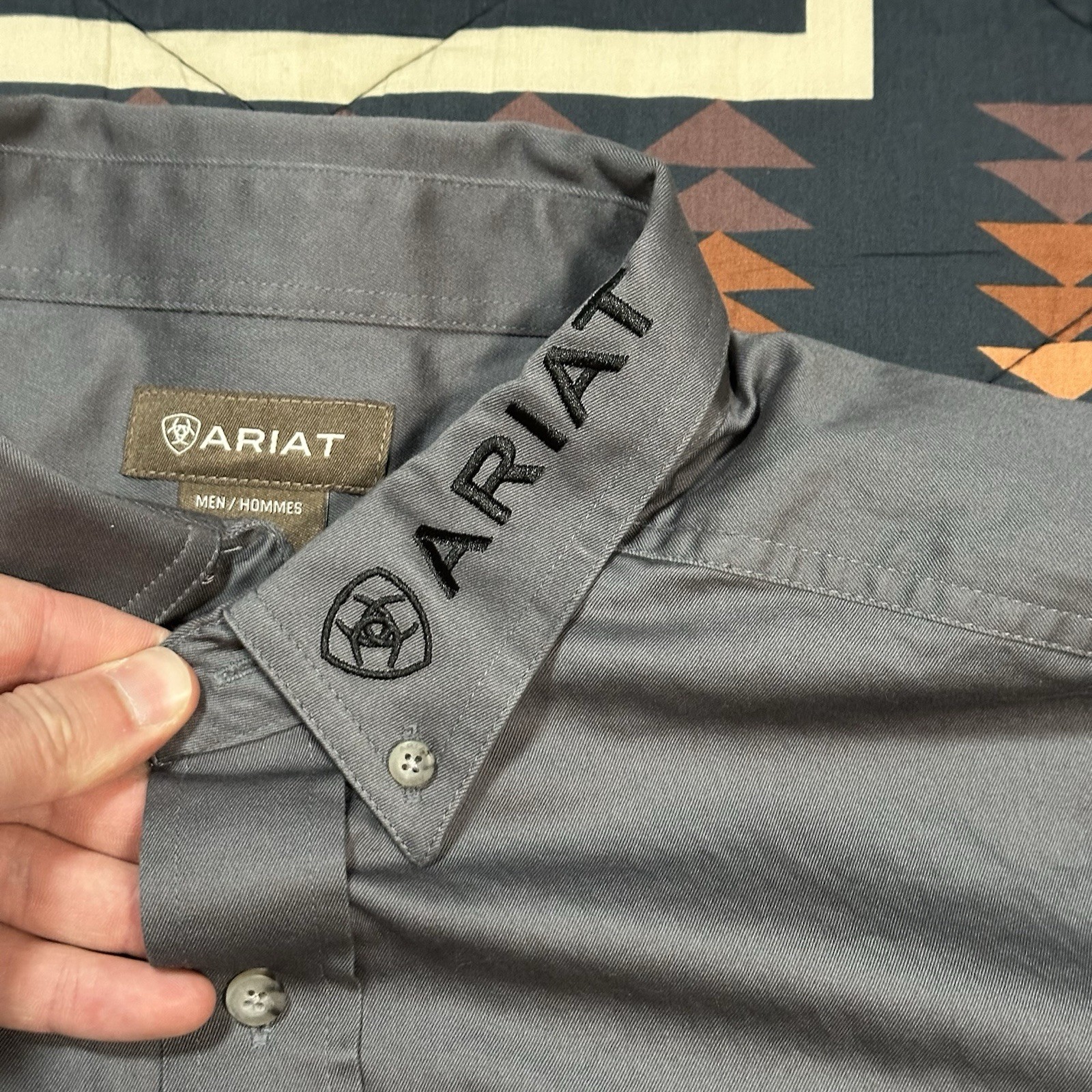 как выглядит Ariat Shirt Mens Button Down Gray Team Logo American Flag Twill Classic Fit XL фото