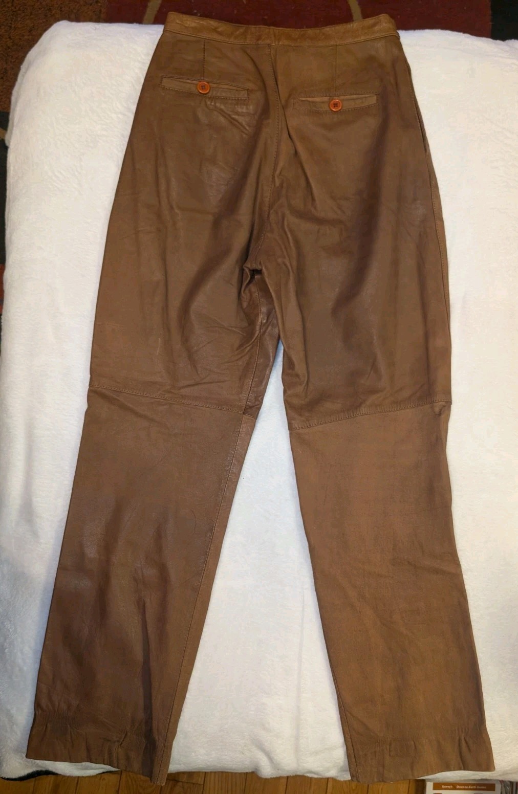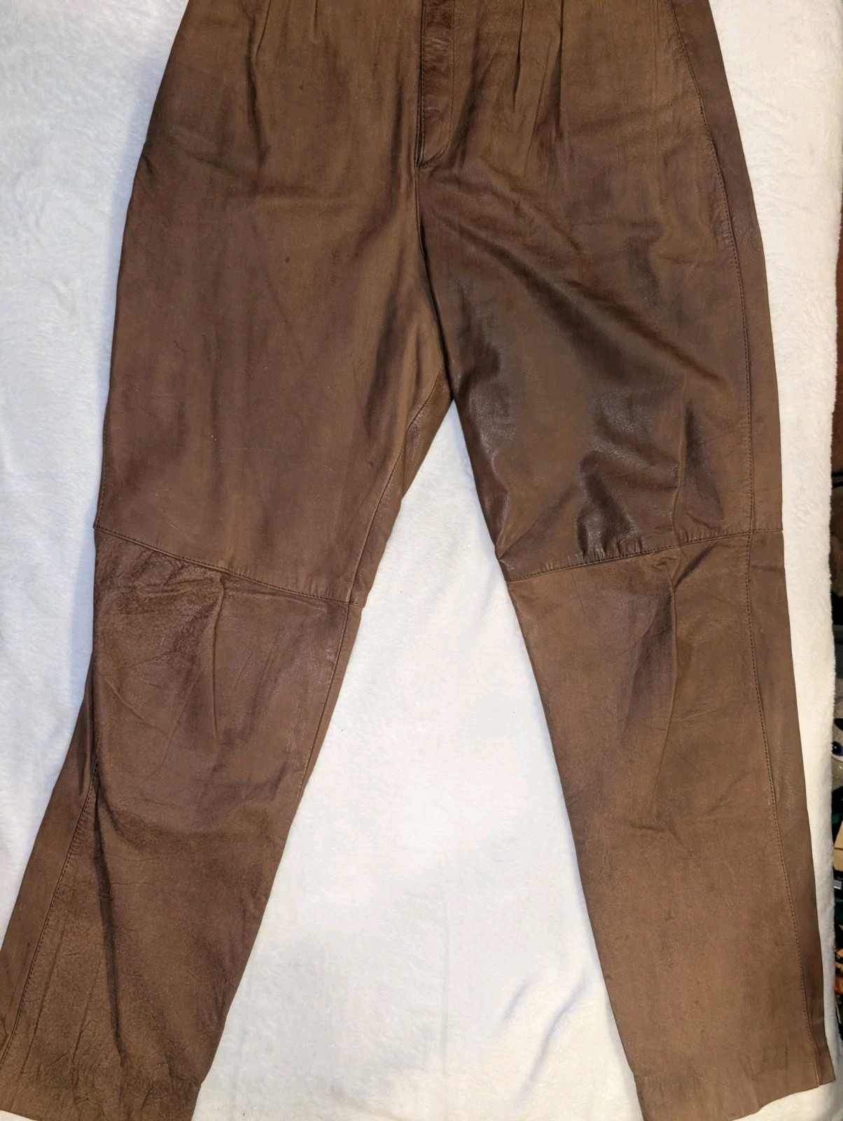 как выглядит Vintage 80s Brown Leather Pants Leather Fur Co Korea Sz 9/10 Pleated High Rise фото
