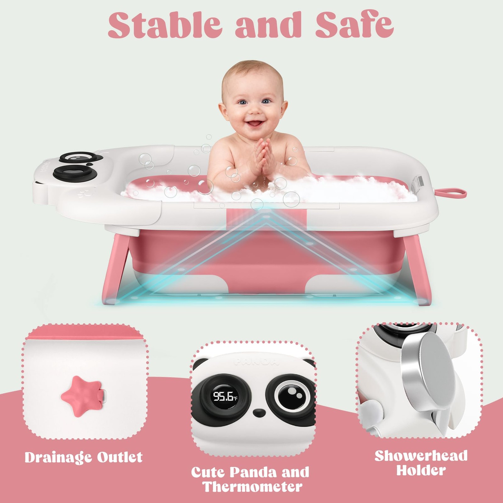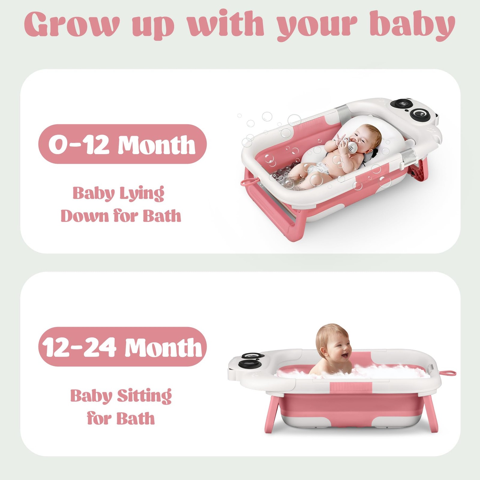 Foldable Baby Bathtub, Lightweight Bathtub for Infants to Toddlers with Soft