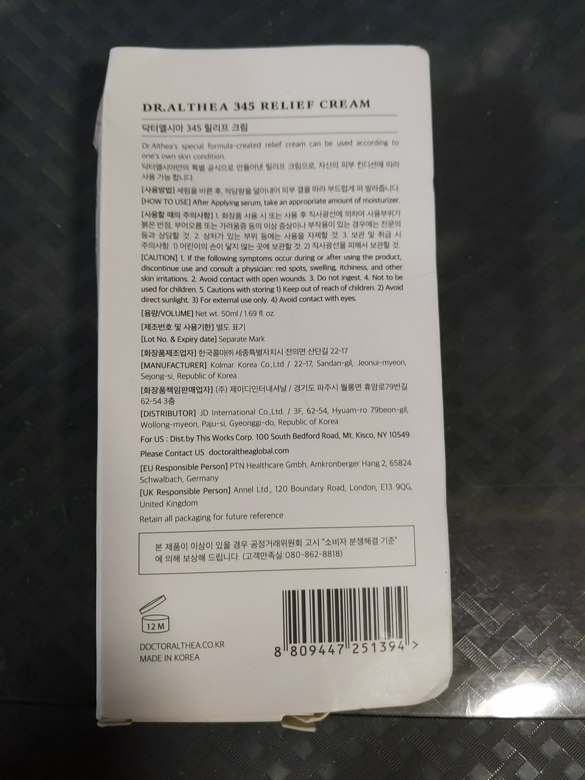 Dr.Althea 345 Relief Cream Daily Face Moisturizer 50ml 1.7 Fl Oz Exp 03/28 81