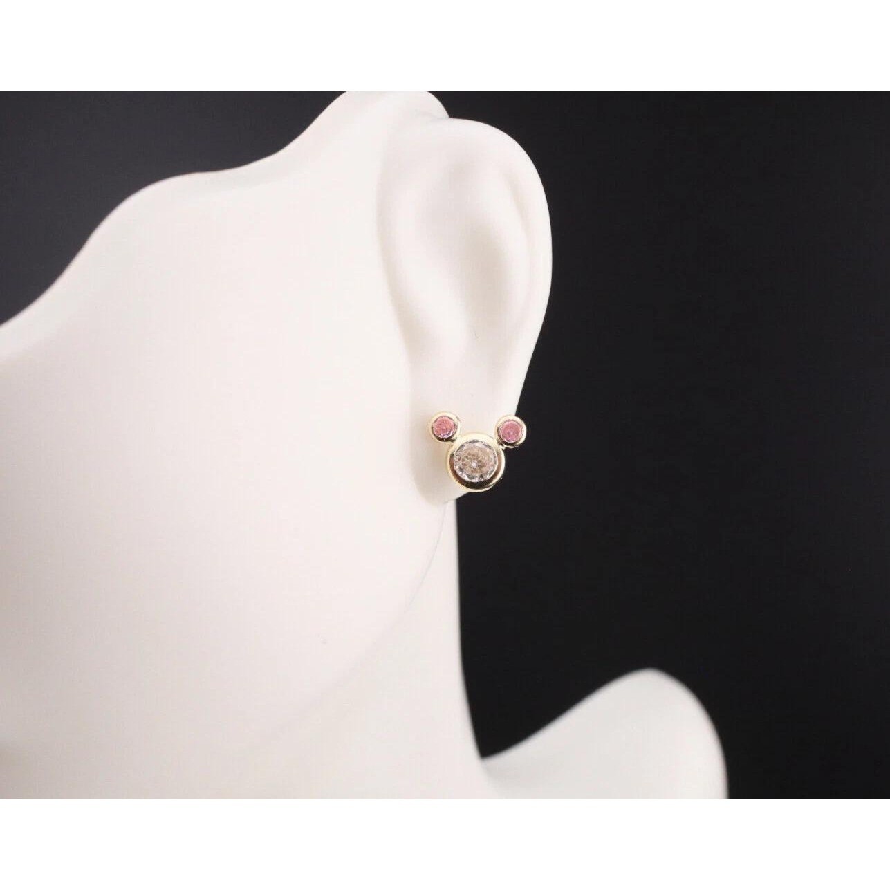 Women's 14k Gold Pink Mickey Mouse Silhouette CZ Mini Stud Earrings Screw Post