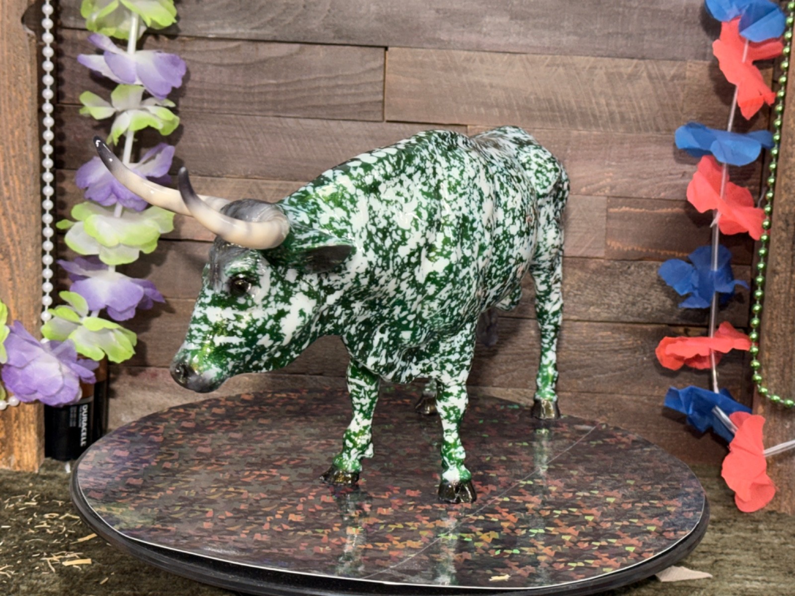 • Breyer Model Animal Texas Longhorn Bull Sirloin Would Dapple Green ChristmasCM