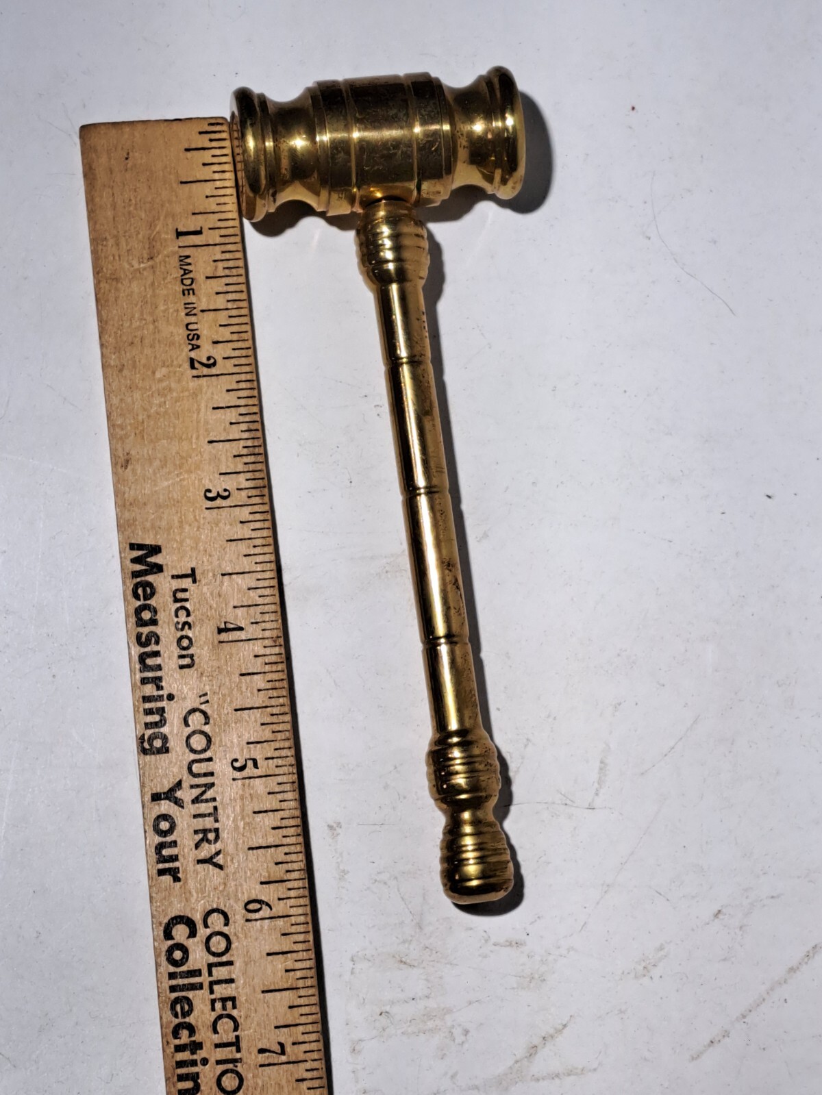 VINTAGE BRASS AUCTIONEER JUDGE GAVEL HAMMER 6"