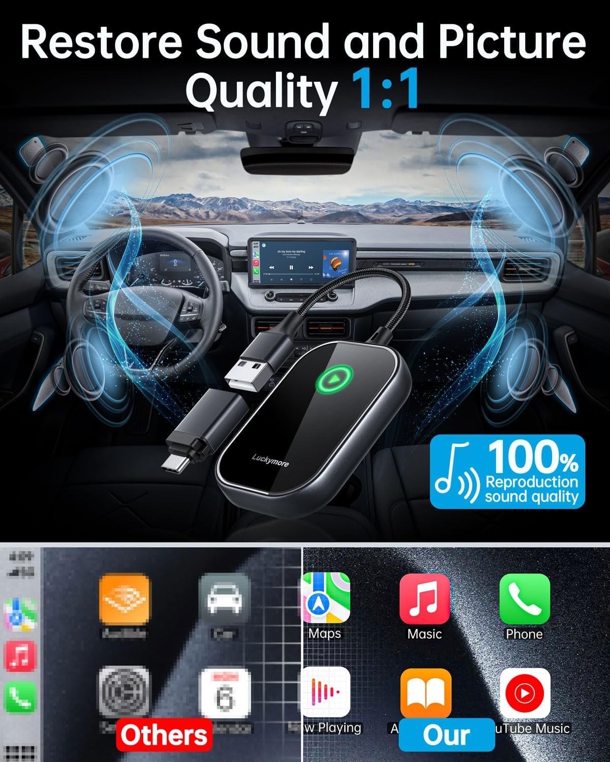 Wireless CarPlay Adapter for Apple iPhone, Converts Factory Wired CarPlay to Wir