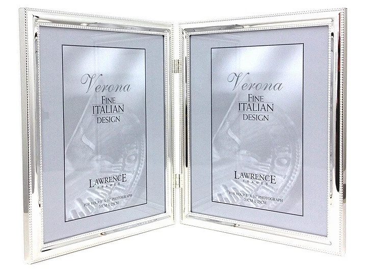 Lawrence 8x10 Beaded Silver Plated Double Picture Frame Classy BRAND NEW