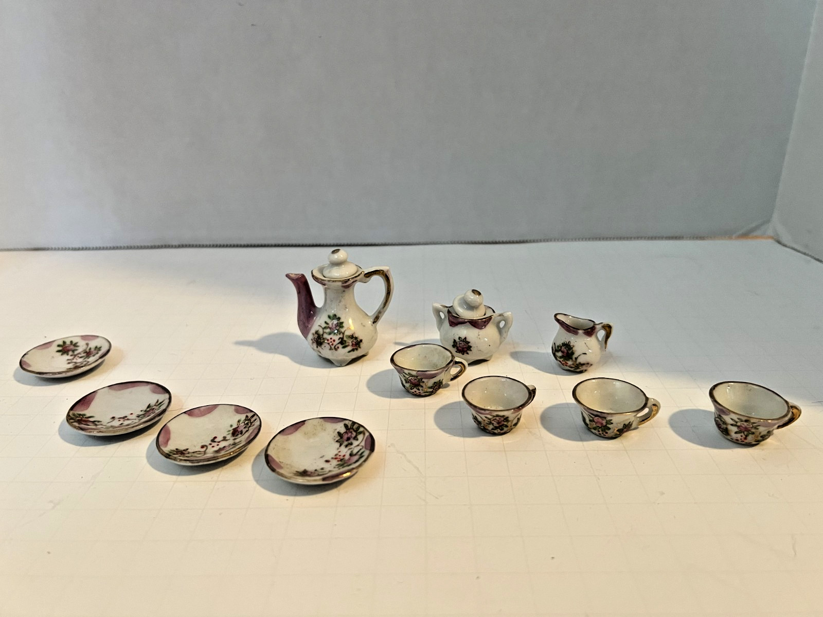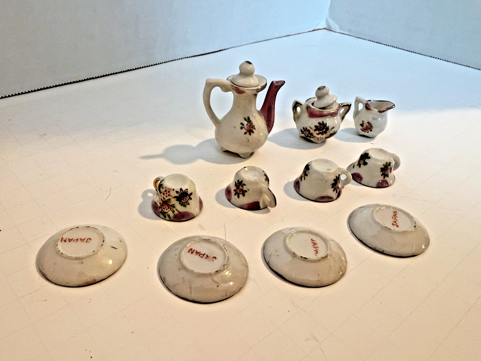 Vtg Miniature Porcelain Tea Set Hand Painted Floral w/ Gold Trim 13 pcs, Japan