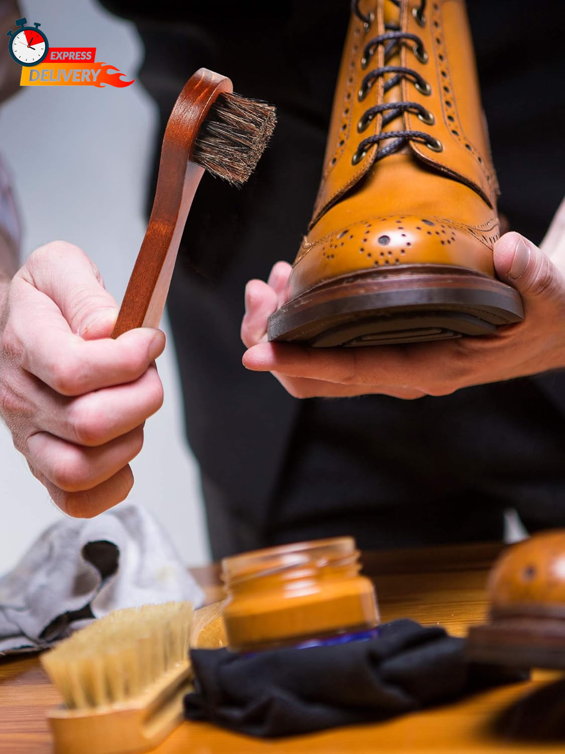 как выглядит Jovitec 3 Pieces Horsehair Polish Applicator Brush Kit Saddle Soap Shoe Shine Br фото