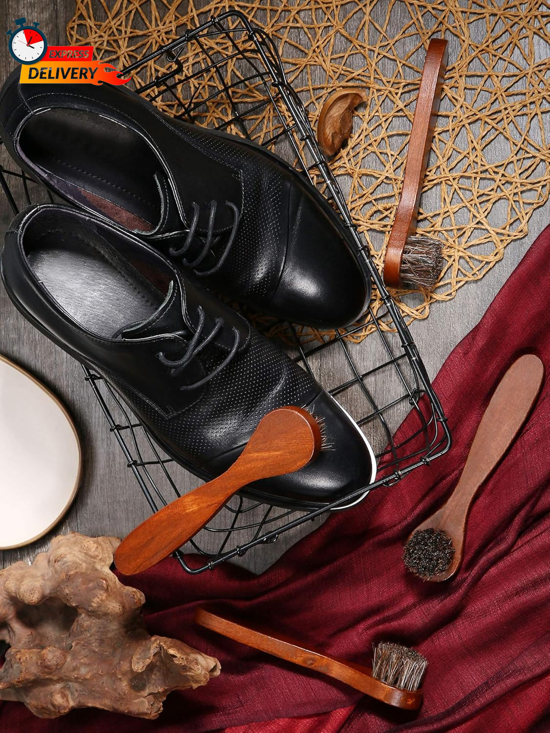 Jovitec 3 Pieces Horsehair Polish Applicator Brush Kit Saddle Soap Shoe Shine Br
