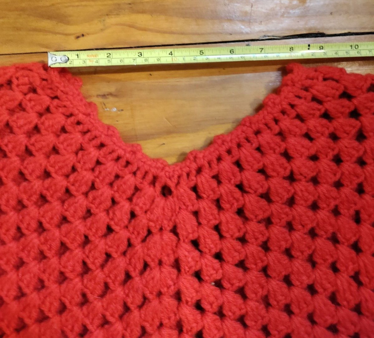 как выглядит Vintage Hand-Crocheted Granny Stitch Poncho Fringe Red, White Blue One Size фото