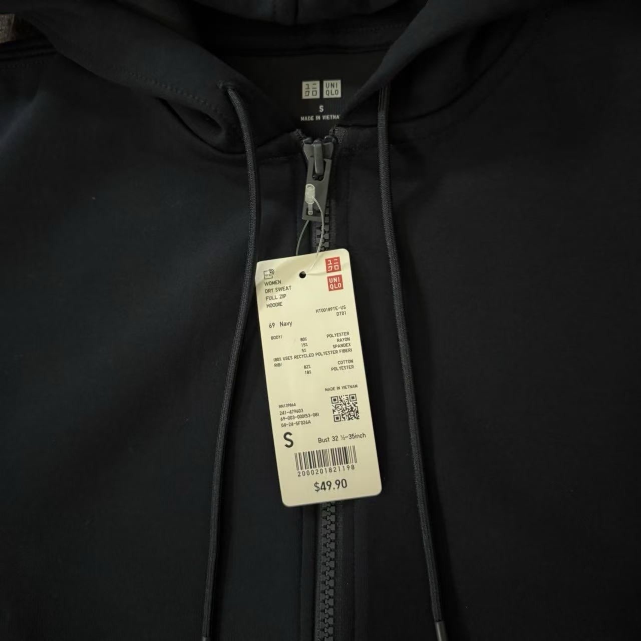 как выглядит Uniqlo Dry Sweat Full-Zip Hoodie Navy Womens Size S фото
