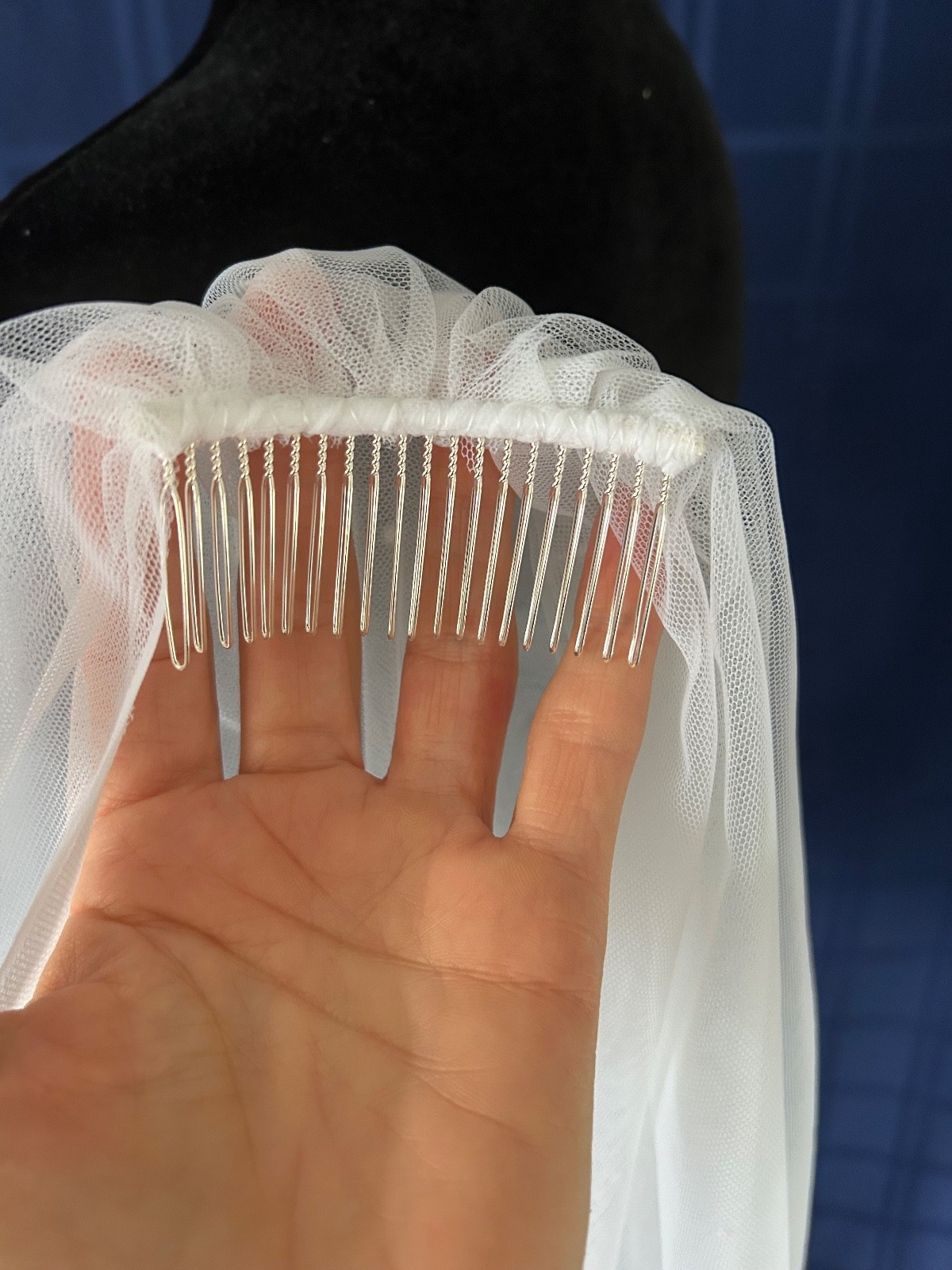 как выглядит FINGERTIP LENGTH 2 TIER DROP VEIL. BRIDAL WEDDING ELEGANT CUT EDGE фото