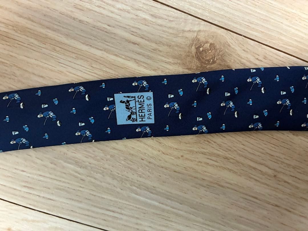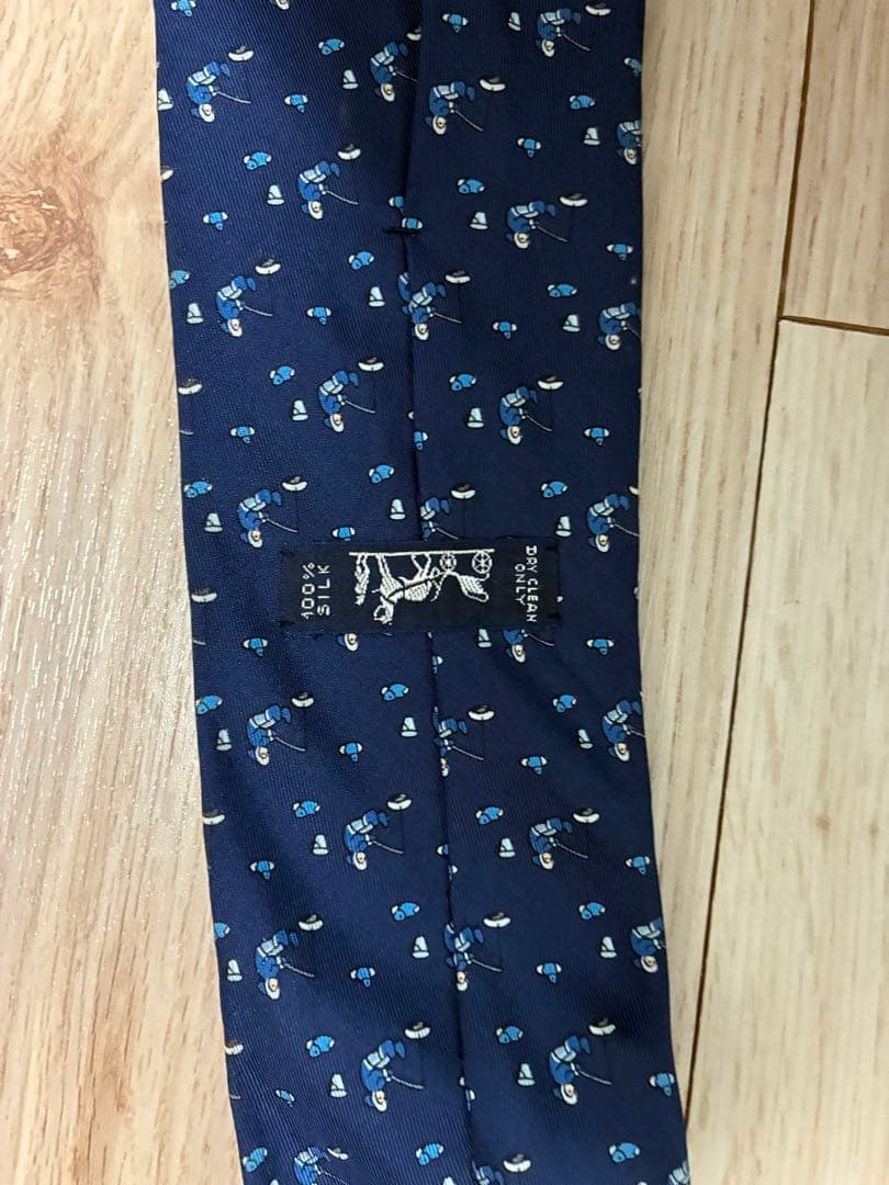 HERMES Tie Navy Character Pattern
