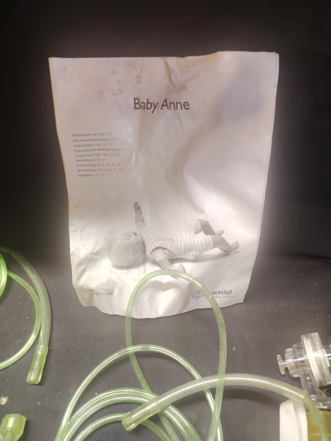 как выглядит Laerdal Baby Anne CPR Manikins Lot of 2 With Bag Manual And Masks Hoses фото
