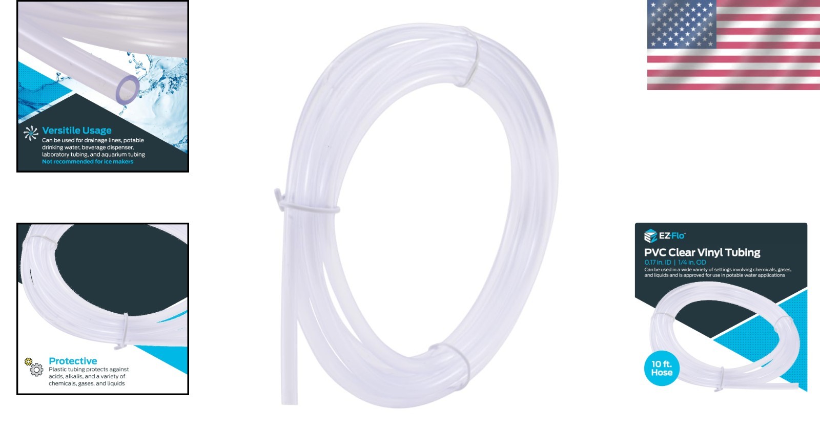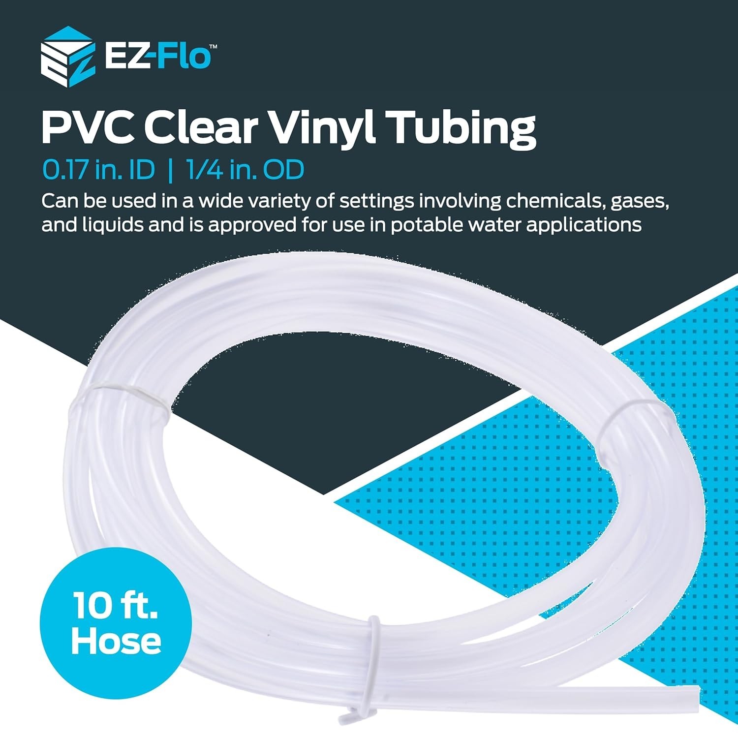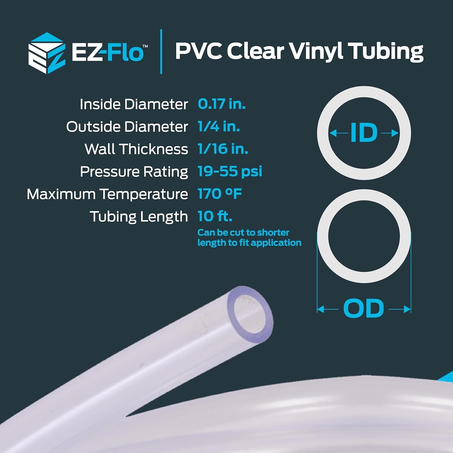 • Eastman 10ft Clear PVC Tubing, 0.17 ID x 1/4 OD - Ideal for Aquariums Drainage