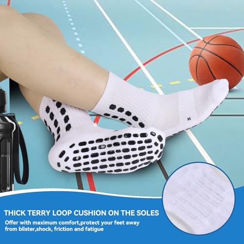 3 Pairs Kids Grip Soccer Socks Cushioned Non Slip Football Medium Black