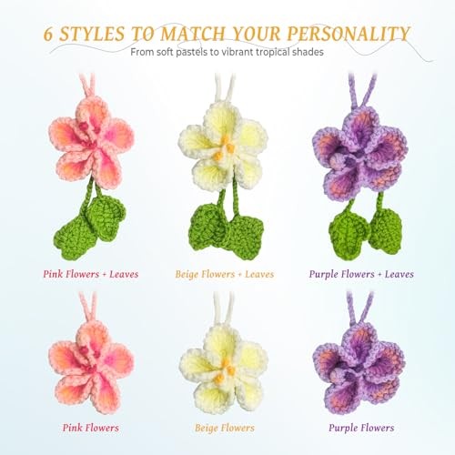 Handmade Crochet Hibiscus Flower Car Mirror Hanging Accessories White leaf